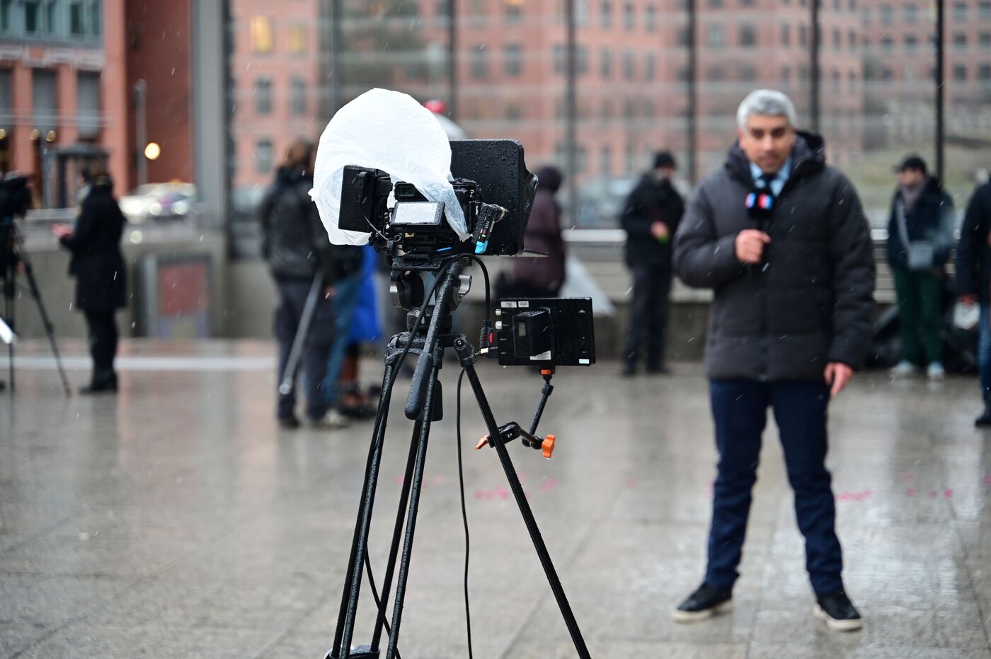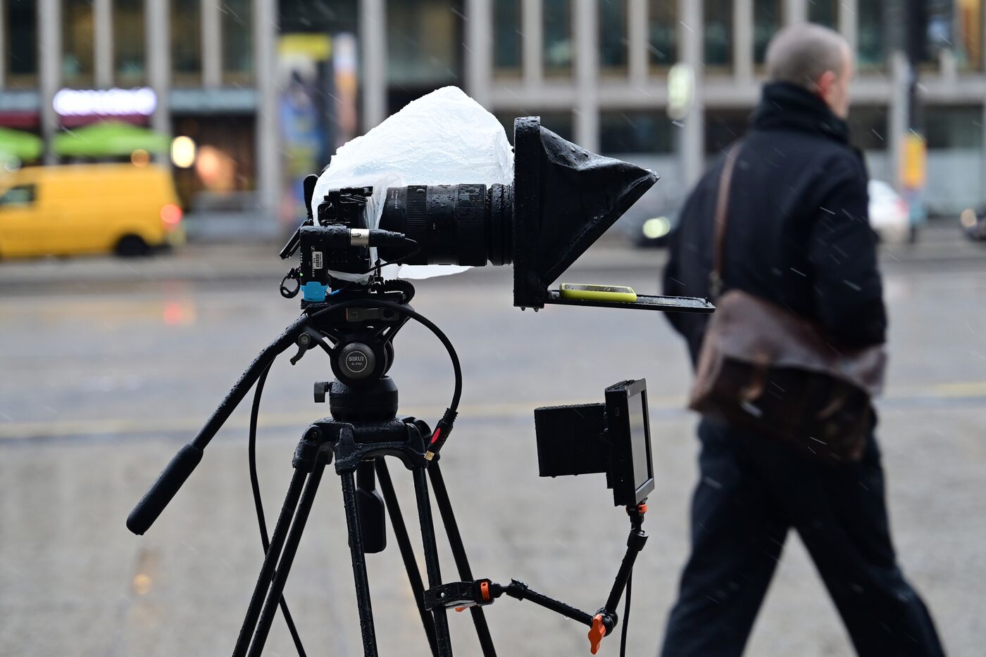 Germany, Berlin, February 13, 2026. Journalist s camera in the snow during the 76th Berlin International Film Festival. Photograph by Romain Doucelin / Hans Lucas.