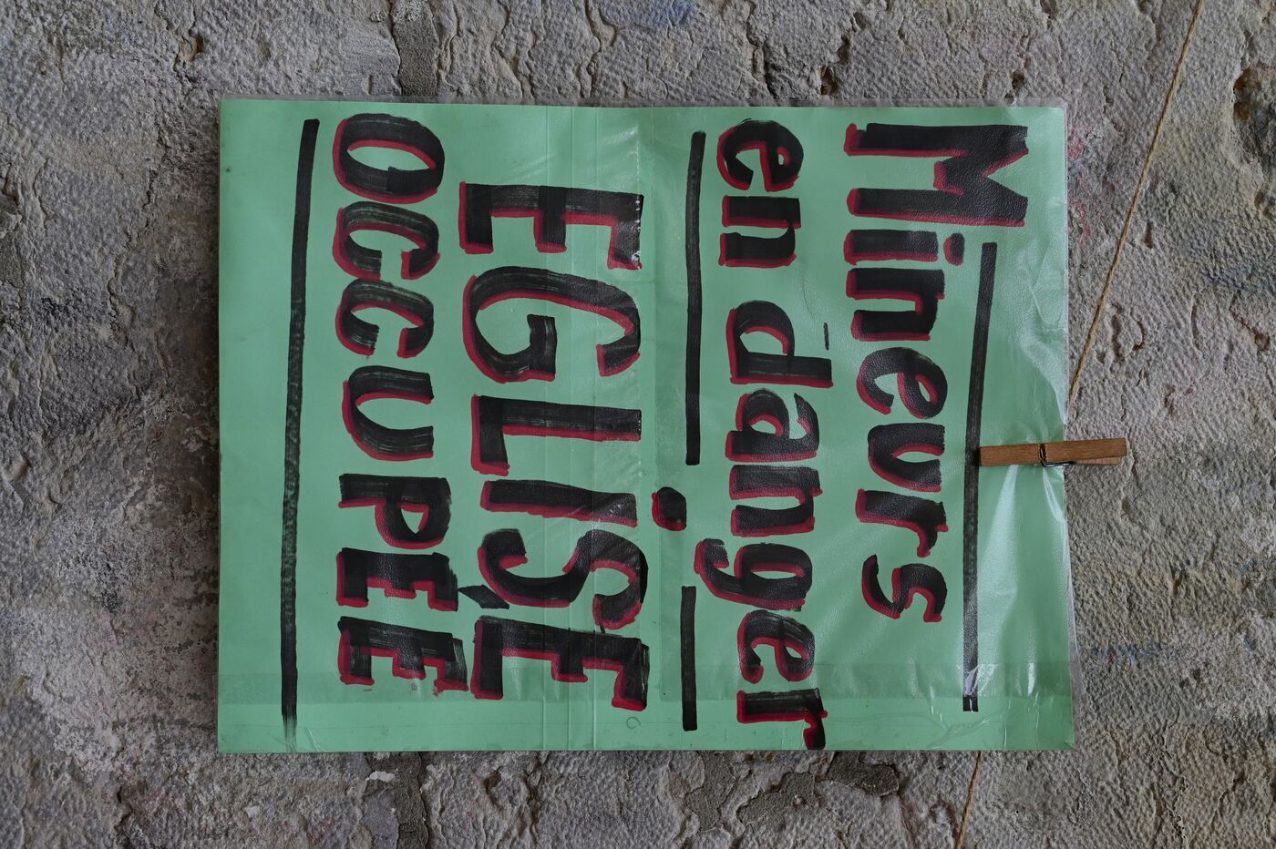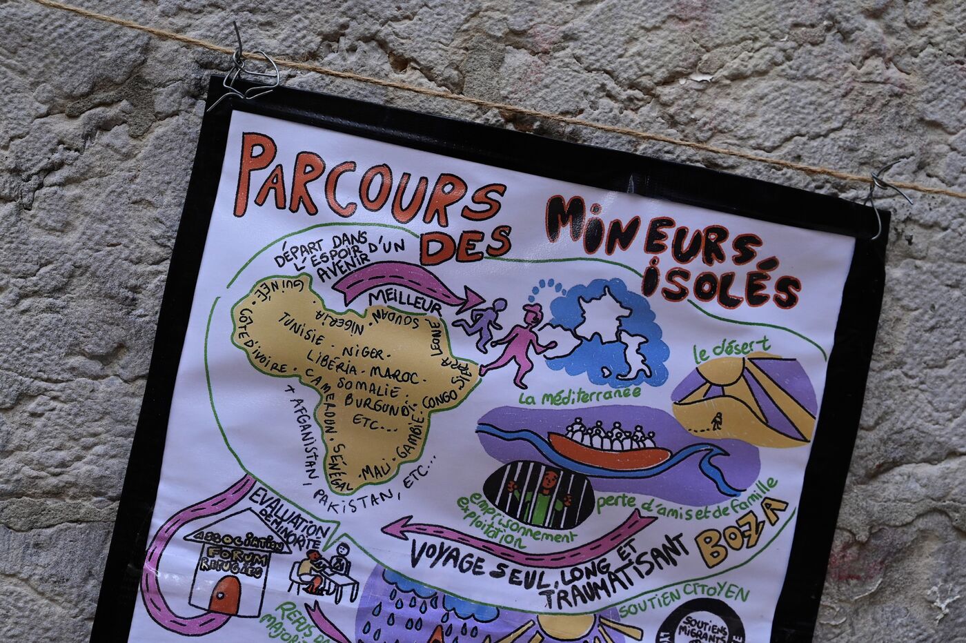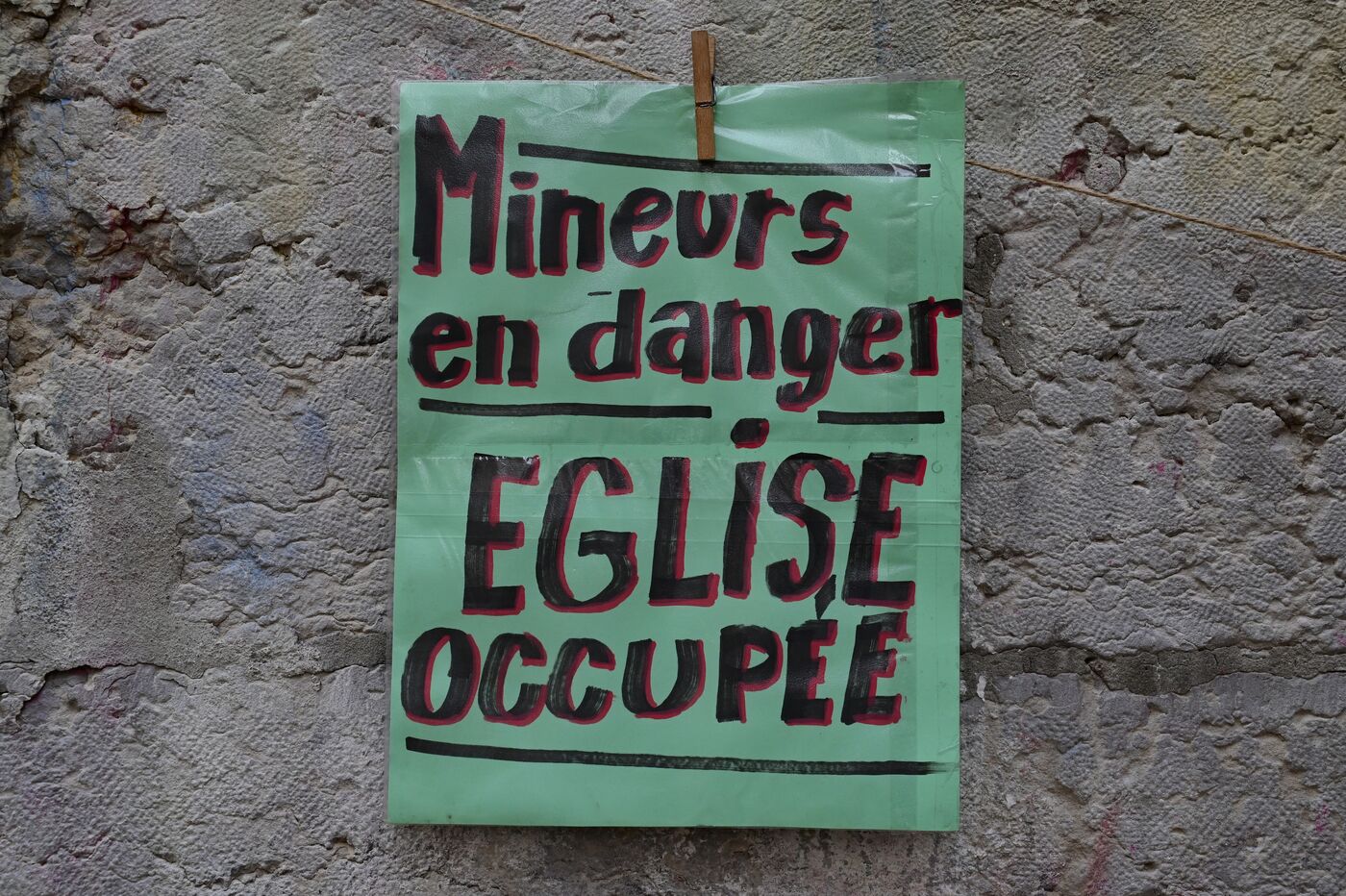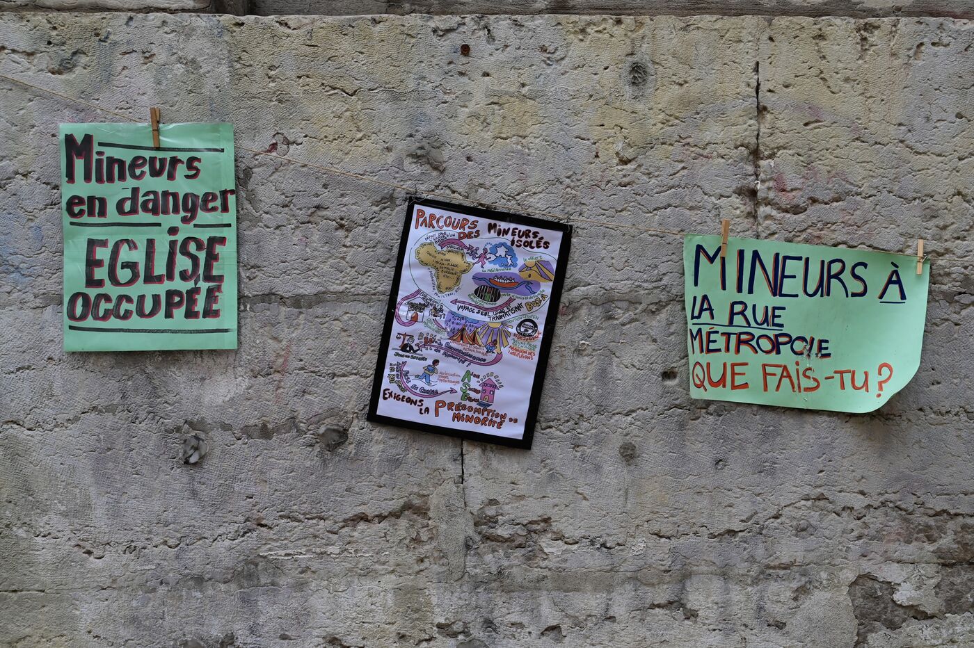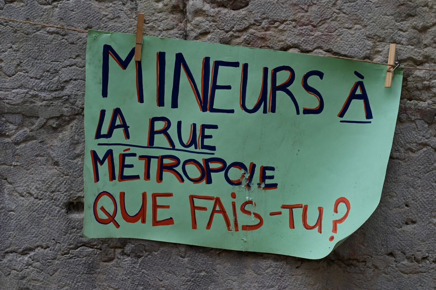 France, Lyon, March 6, 2026. Poster showing unaccompanied and homeless minors in the city of Lyon. Photograph by Romain Doucelin / Hans Lucas.