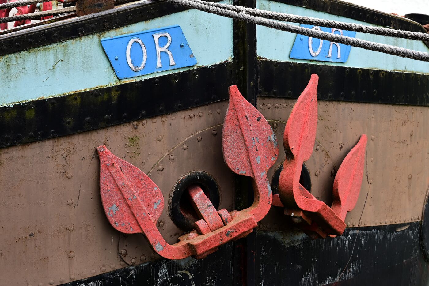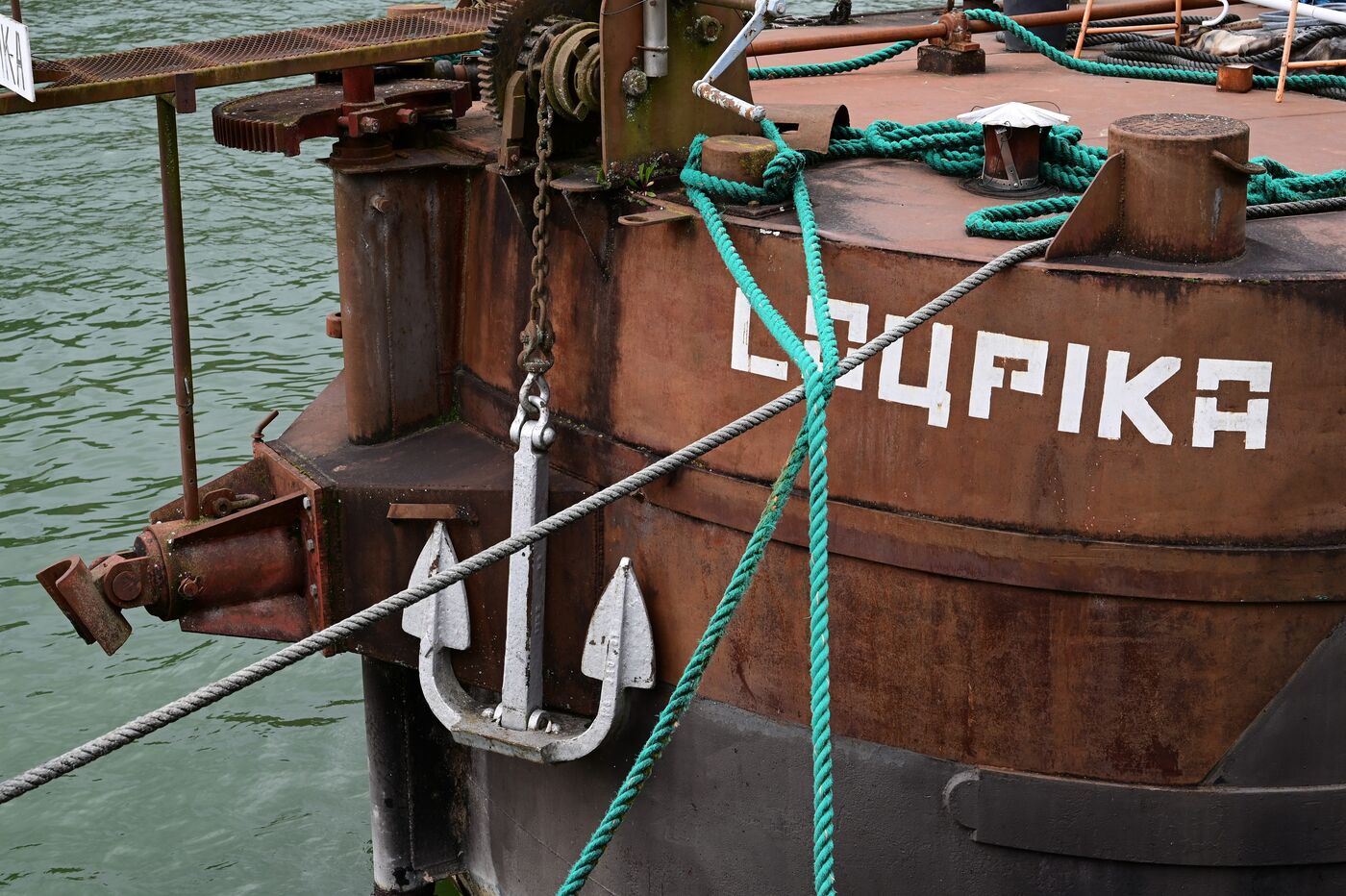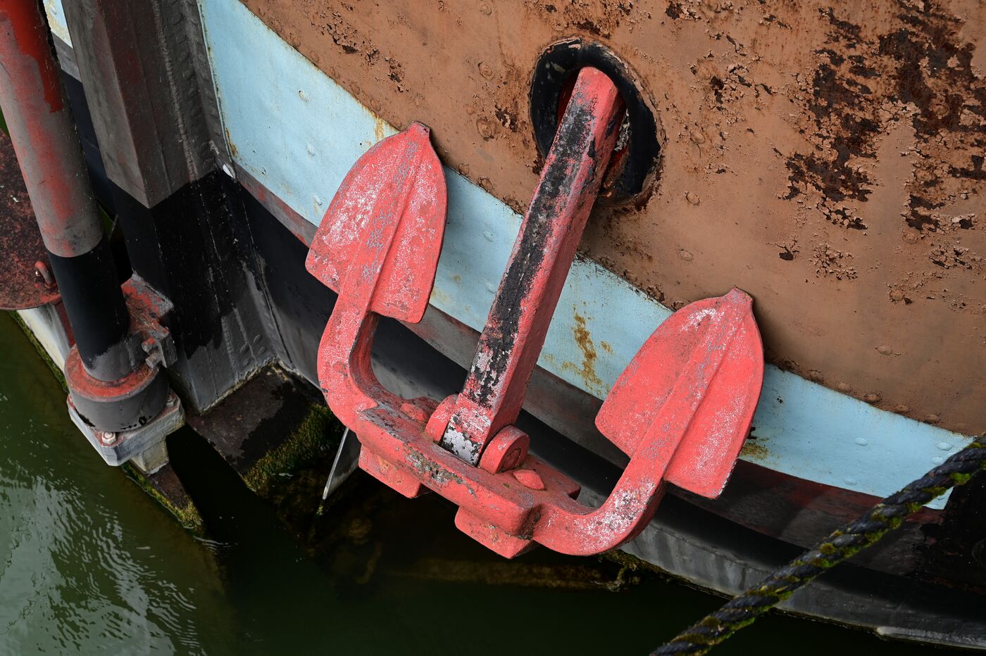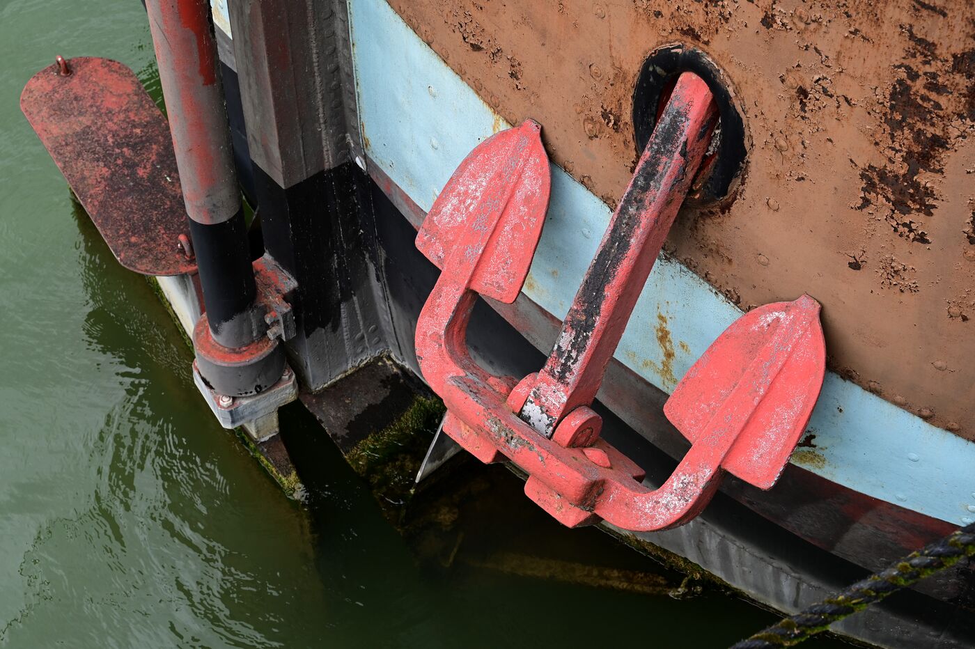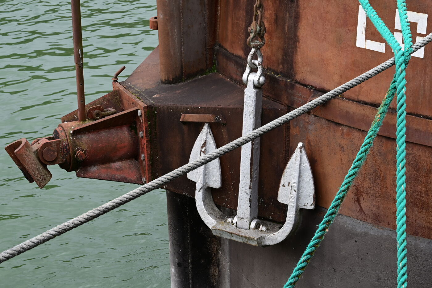 France, Lyon, 2026/03/10. Ancre de bateau sur le fleuve du Rhone. Photographie de Romain Doucelin / Hans Lucas.