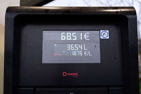 France, Meyzieu, March 11, 2026. Illustration of a fuel price increase at a service station in France due to the war in Iran. Photograph by Romain Doucelin / Hans Lucas.