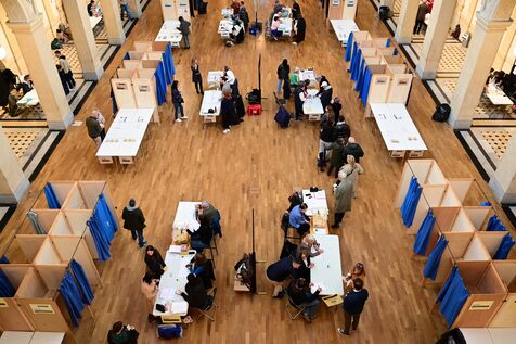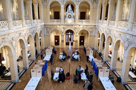 France, Lyon, March 22, 2026. Voting day for the second round of municipal elections in France and the Lyon metropolitan area at the Palais de la Bourse on Sunday, March 22, 2026. Photograph by Romain Doucelin / Hans Lucas.