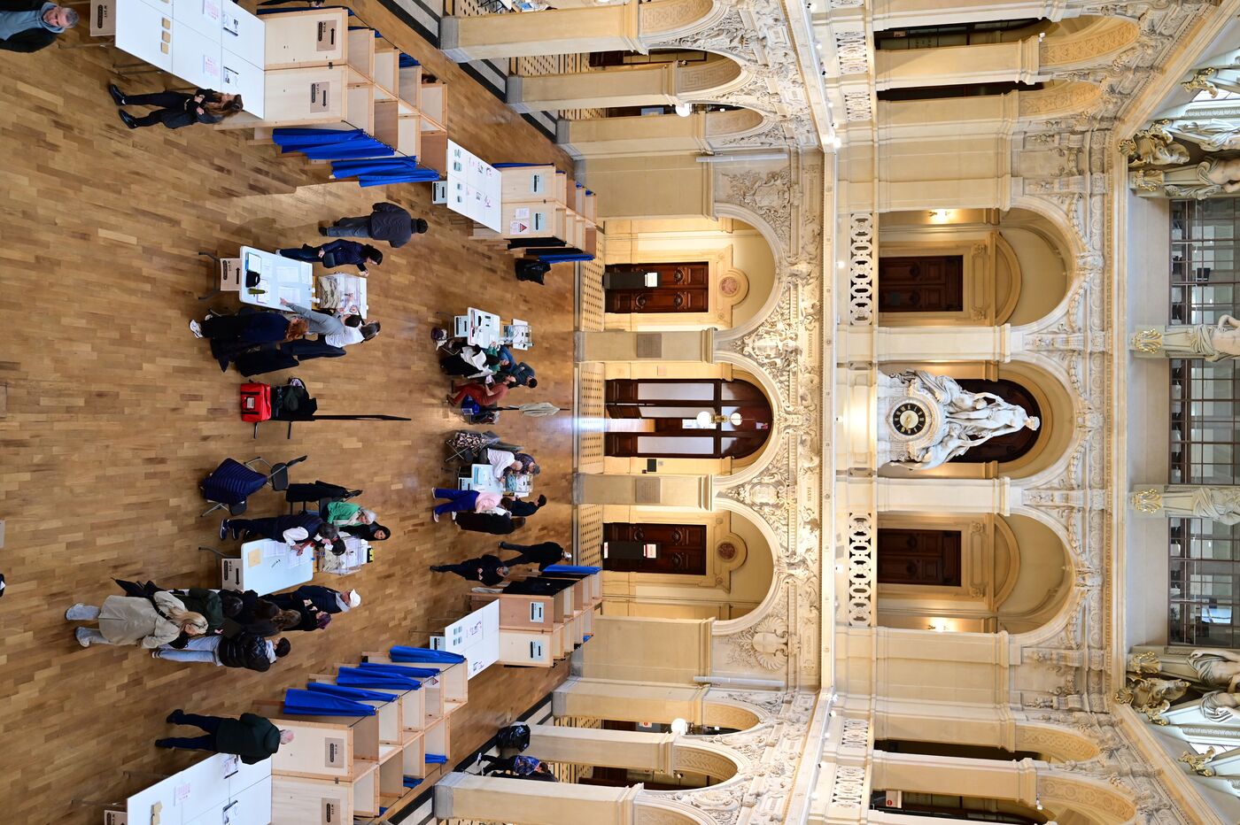 France, Lyon, 2026/03/22. Jour de vote du Second tour des elections municipales en France et de la metropole de Lyon au palais de la bourse le dimanche 22 mars 2026. Photographie de Romain Doucelin / Hans Lucas.
