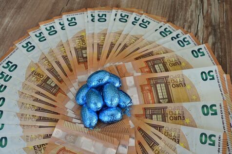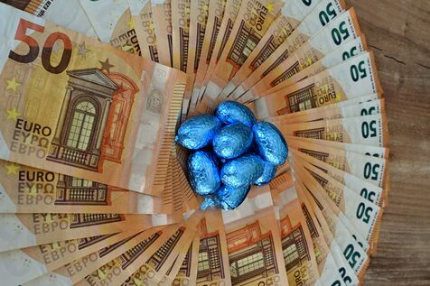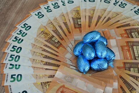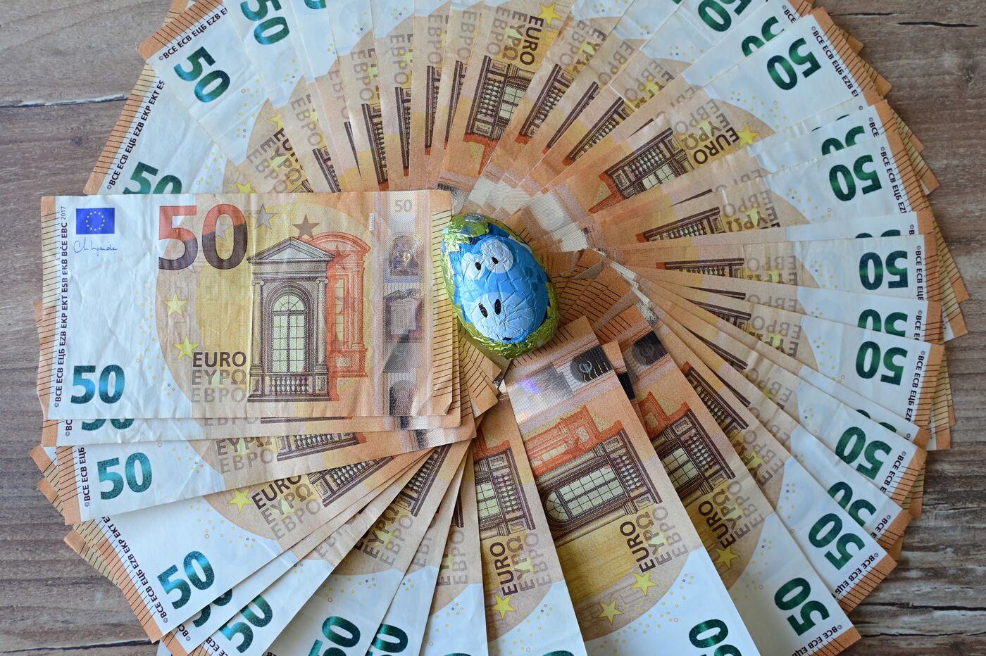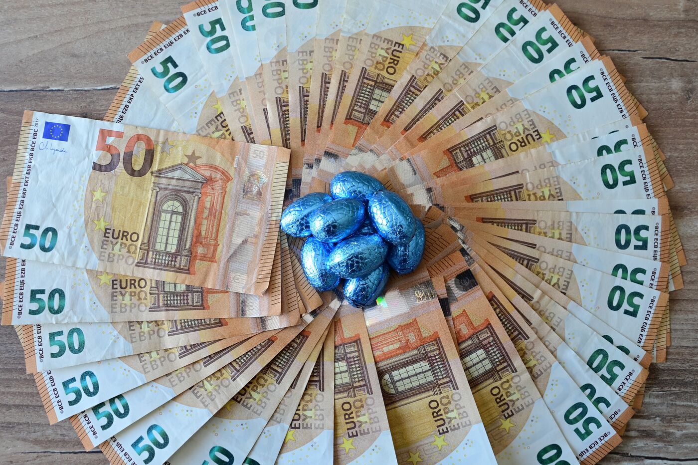 France, Veranne, 2026/04/02. Inflation chocolats de paques et billets de banque de cinquante euros. Photographie de Romain Doucelin / Hans Lucas.