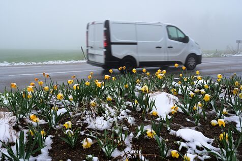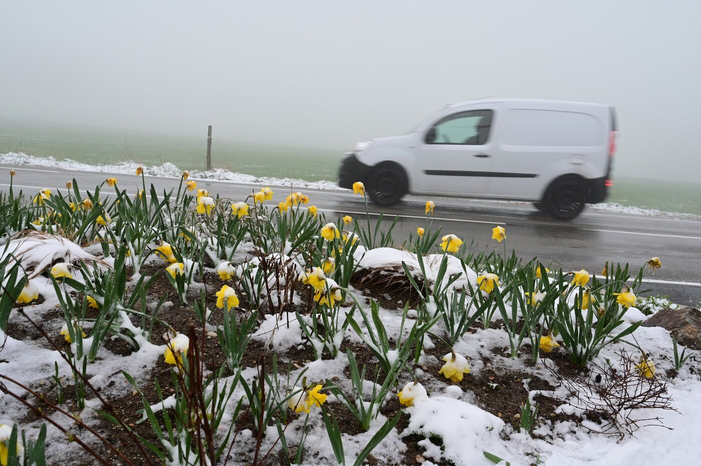 France, Le Bessat, April 13, 2026. A drop in temperatures and spring snowfall in the village of Le Bessat in the Loire department. Photograph by Romain Doucelin / Hans Lucas.