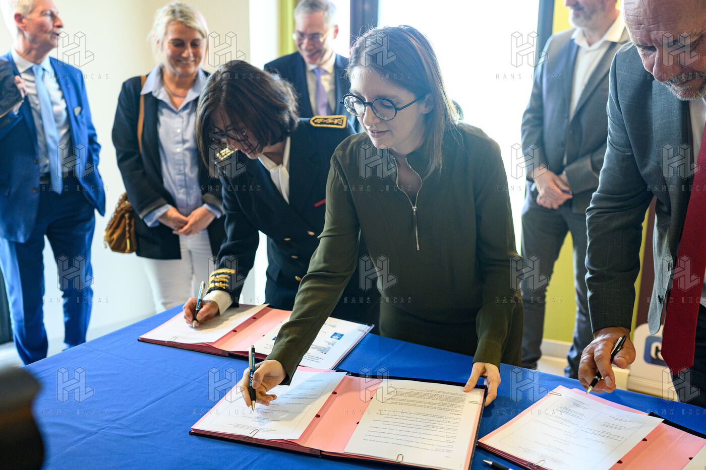 Visite de la ministre Aurore Bergé à Orléans. Visite de l'usine Duralex pour échanger autour de la place des femmes dans l'industrie et à la maison des femmes de l'hôpital d'Orléans pour signer une convention locale de soutient aux femmes victimes de violence.
