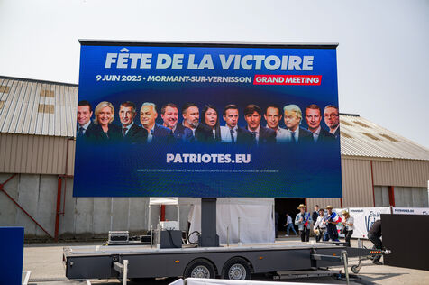 Meeting du parti européen Patriots.eu, aussi nommé "Fête de la victoire", organisé dans la petite commune de Mormant-sur-Vernisson, près de Montargis, dans le département du Loiret pour commémorer le score de l'alliance européenne lors des élections européennes de juin 2024.