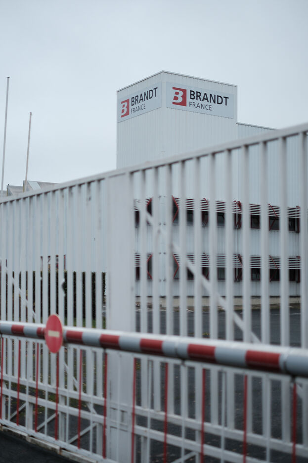 In front of the Brandt factory in Saint Jean de la Ruelle, Loiret, after the announcement of the company's liquidation by the Nanterre court.