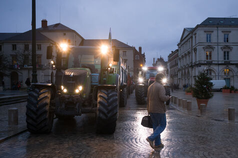 Protest by farmers from the Loiret region, organized by the FNSEA (National Federation of Farmers' Unions) and JA (Young Farmers) unions, in downtown Orléans to protest against the Mercosur agreement currently being discussed within the European Union.