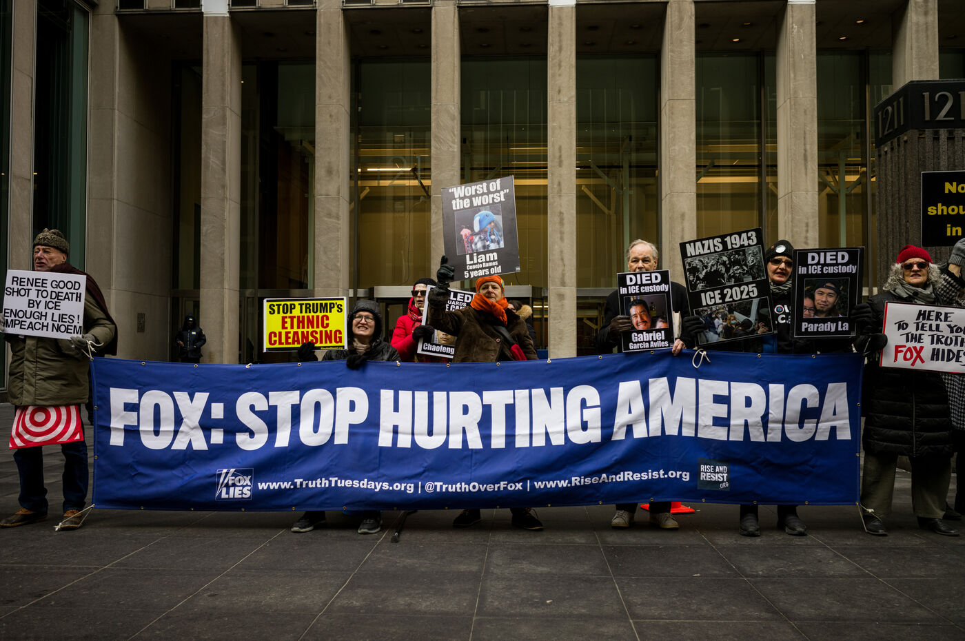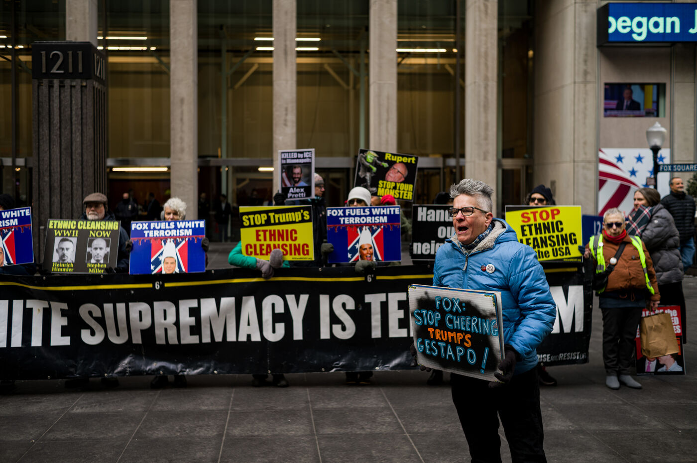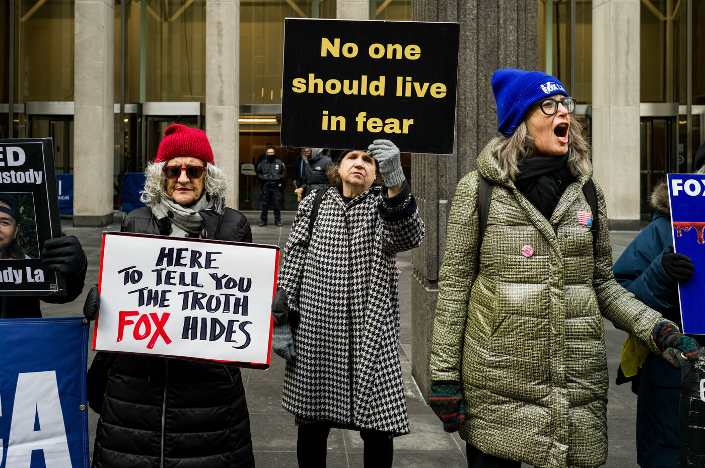 Manifestation devant les locaux de la chaine FOX NEWS à l'appel du collectif Truthtuesday et du collectif Fox Takedown.