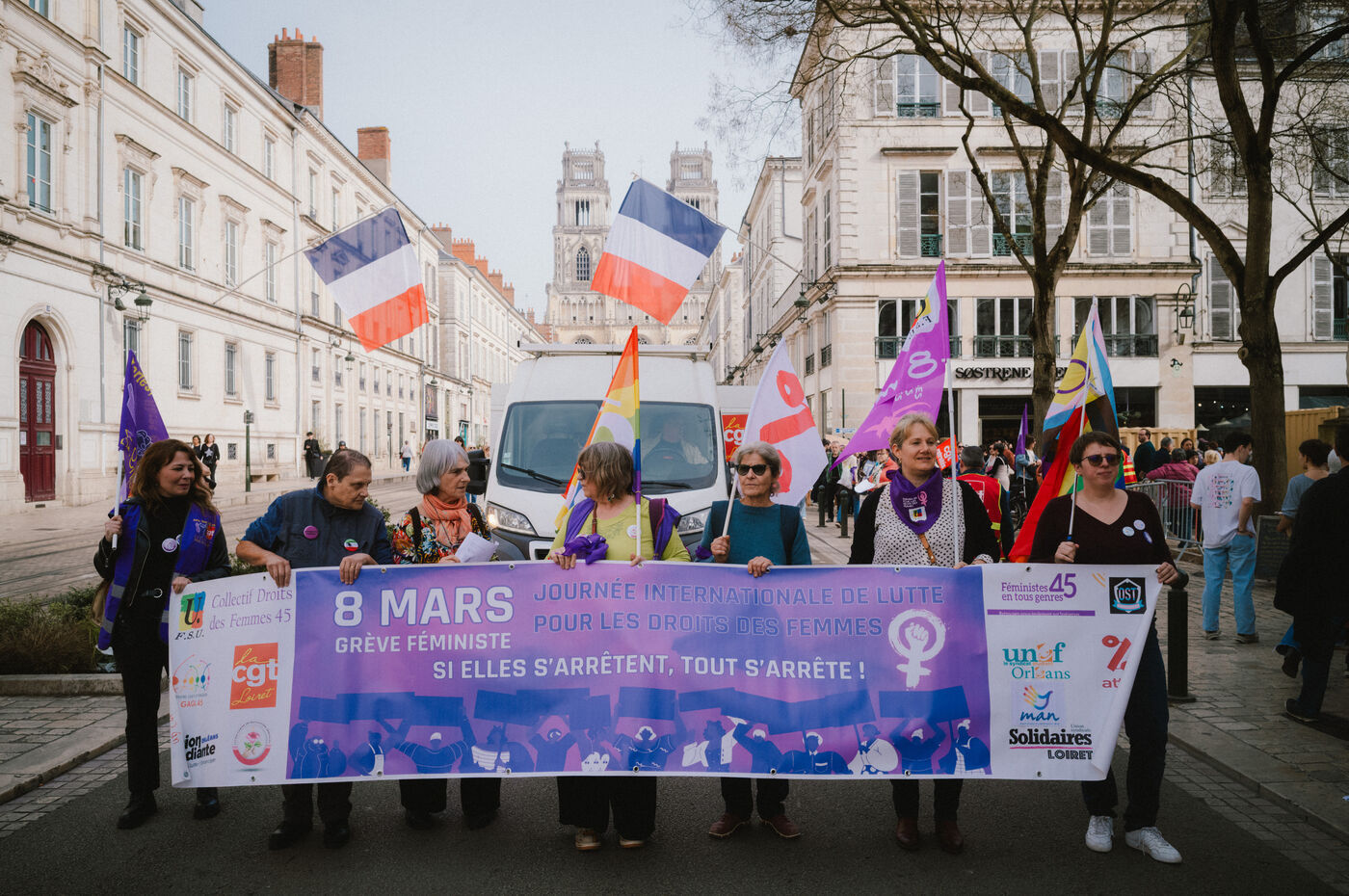 On March 7, 2026, hundreds of people gather in the streets of Orleans for International Women's Rights Day. Amid union banners, handmade signs, and activist slogans, the demonstration voices demands for equality, bodily autonomy, and social justice. In an atmosphere that is both combative and festive, the crowd marches through the historic city center, bringing together different generations, cultures, and struggles in a single collective movement.