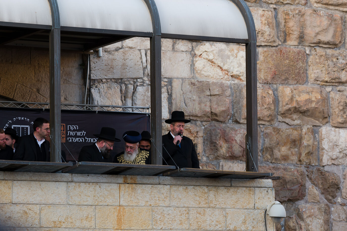 A l appel des Grands rabbin d Israel et des rabbins, une priere commune est organisee au Mur des Lamentations en soutien a la situation que vivent les citoyens israeliens.