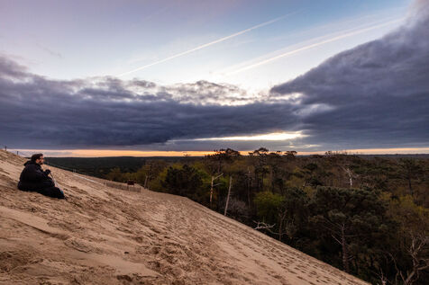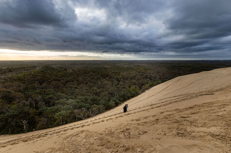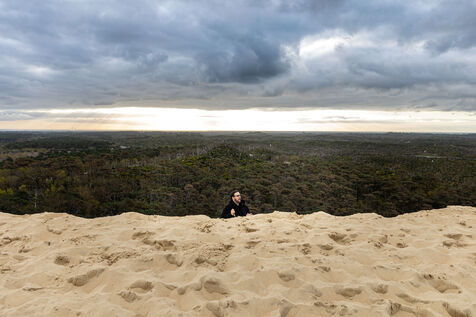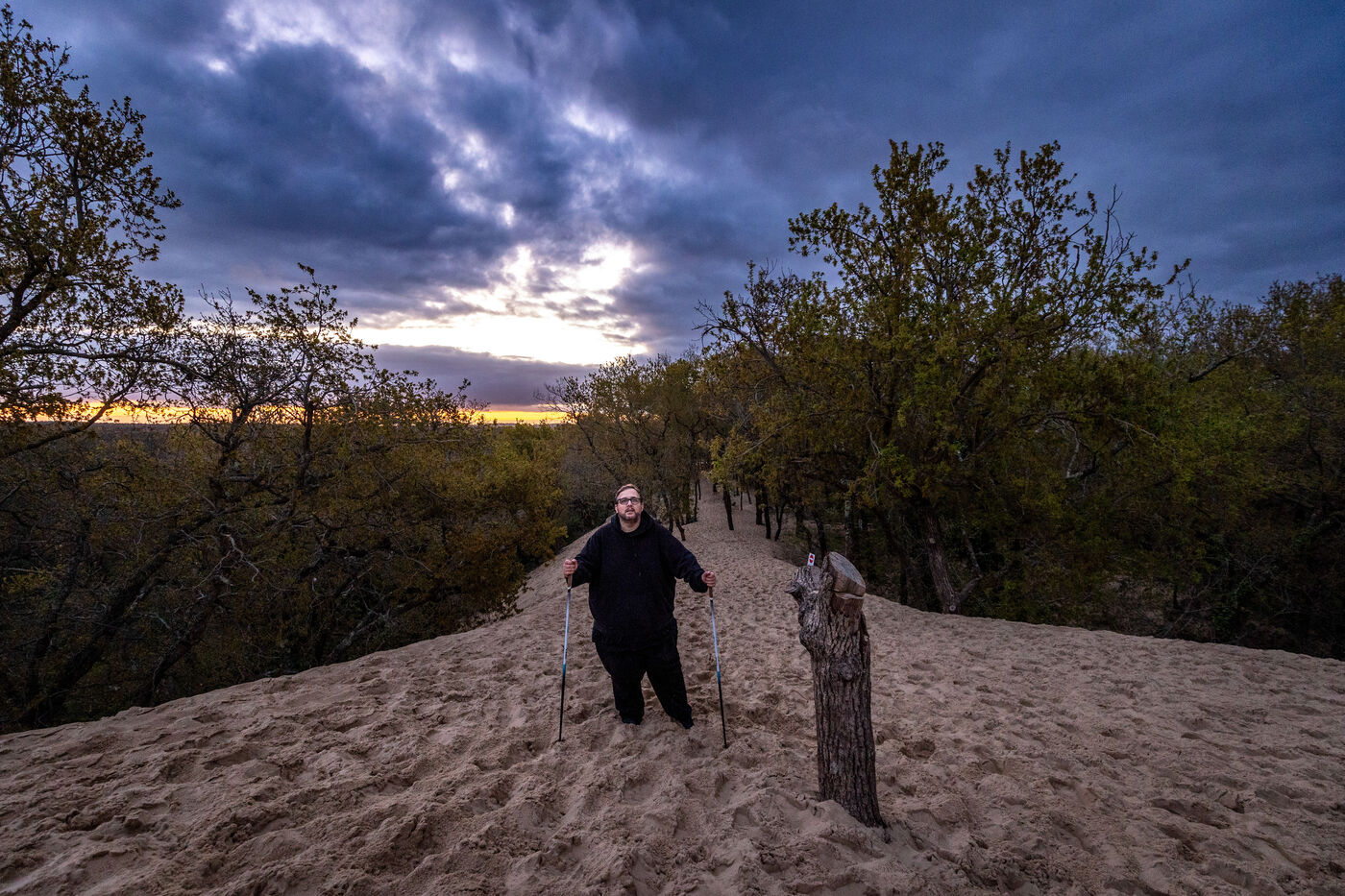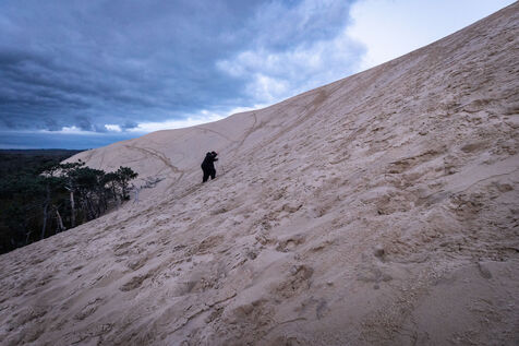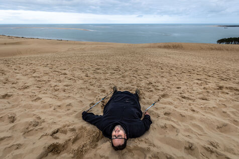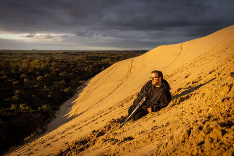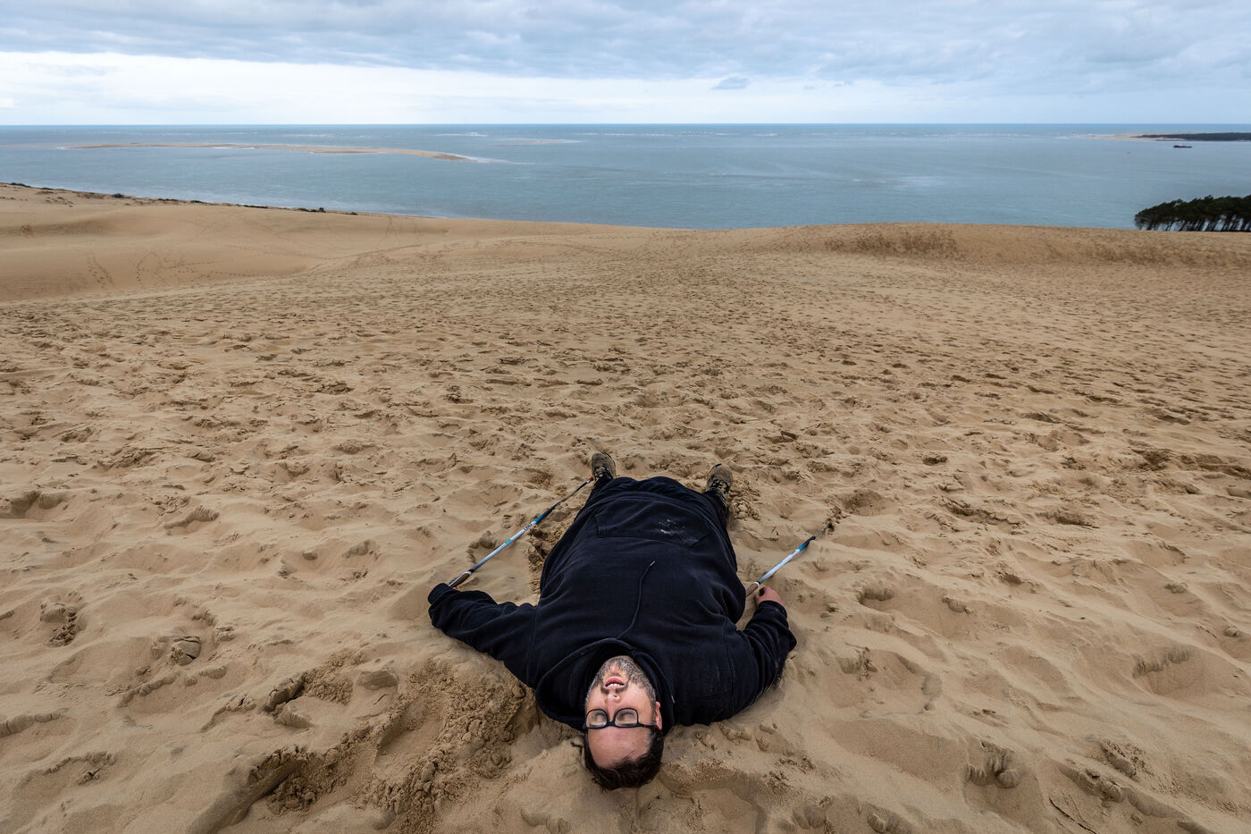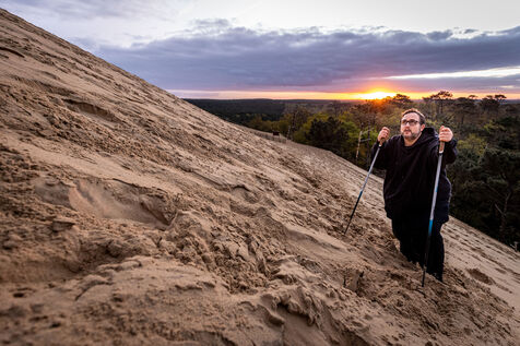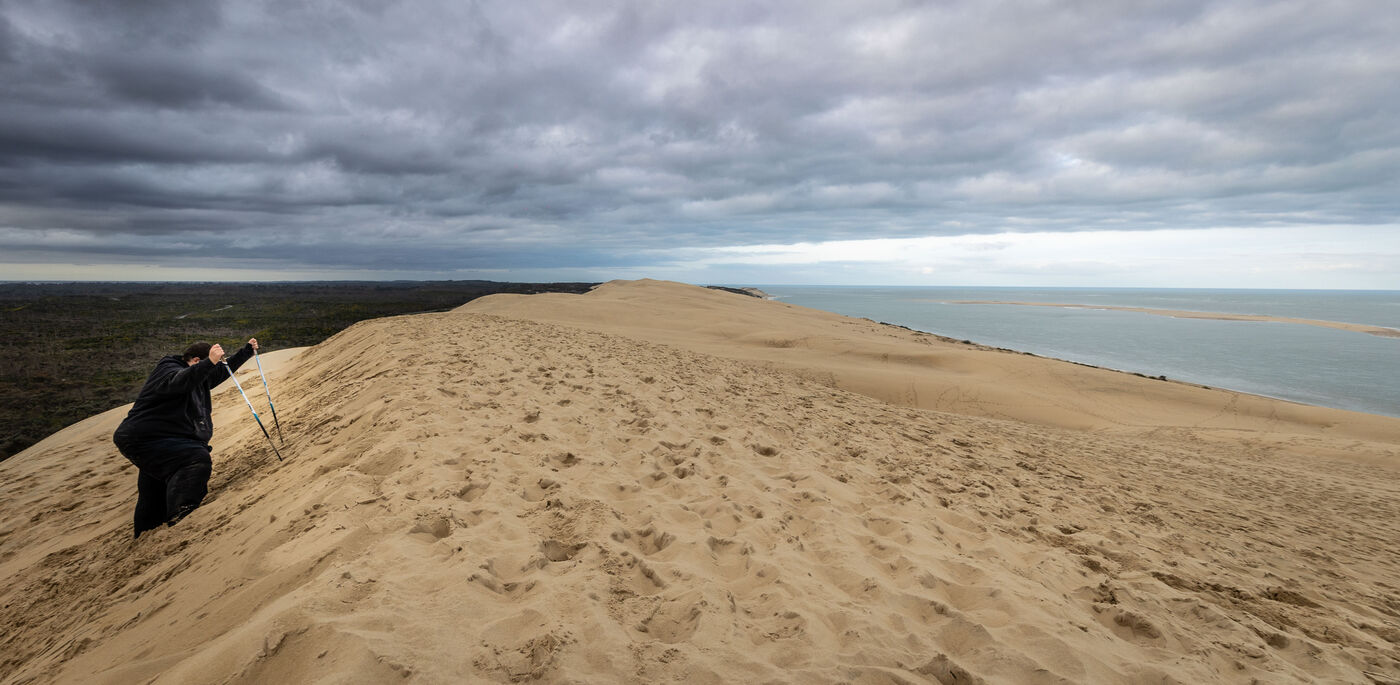Day and night, in the city, in the mountains or on the Dune du Pilat — which he climbs straight up through the sand, away from the stairs — Micka keeps moving. 6,000 steps a day, a strict routine, and a constant online presence where he openly shares his journey.