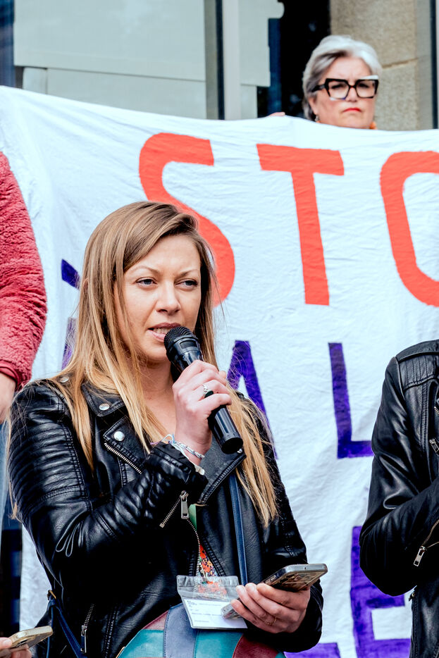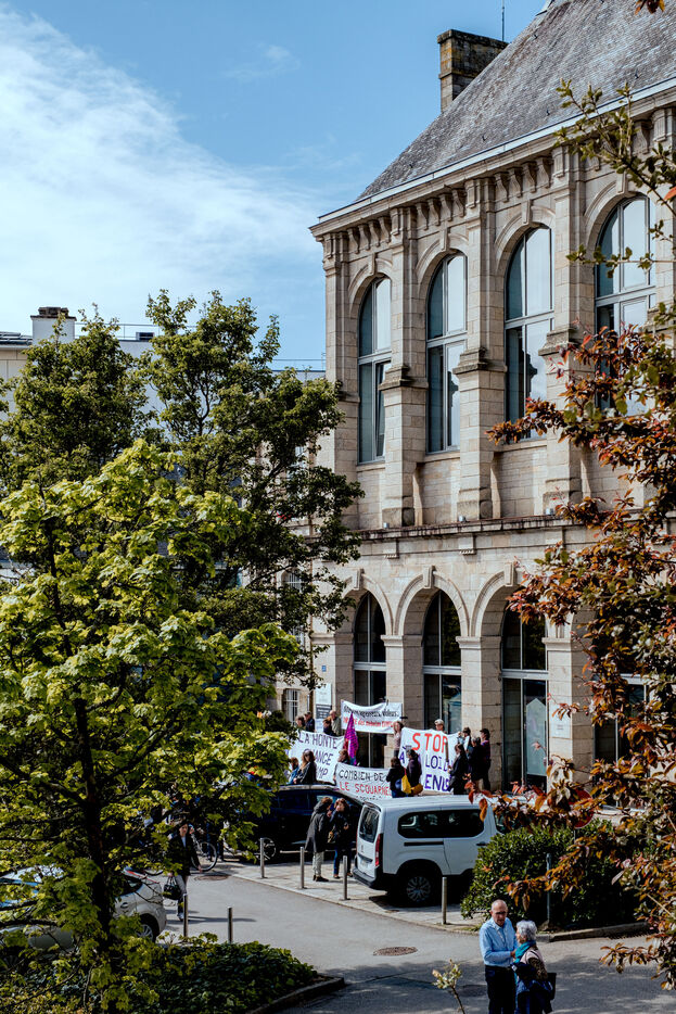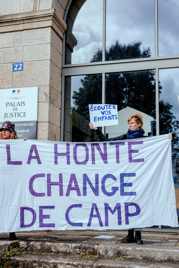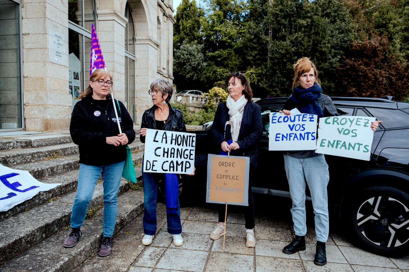 Rally outside the Vannes courthouse to denounce the ‘inaction of the institutions’ in relation to former surgeon Joël Le Scouarnec on 22 April 2024 in Vannes.