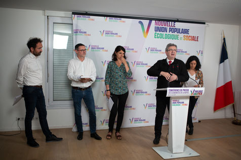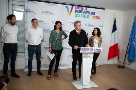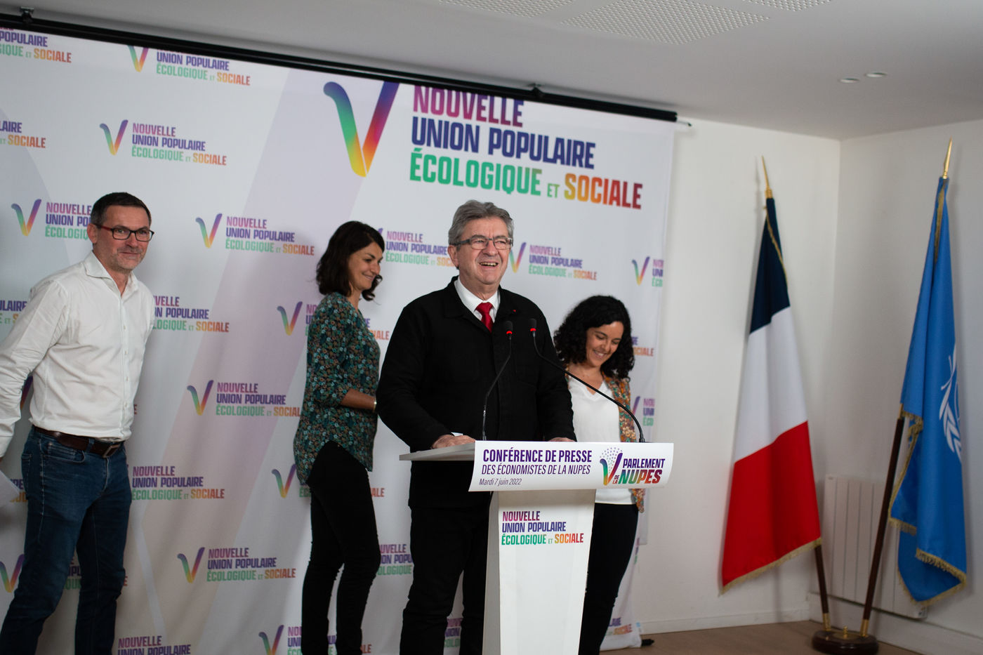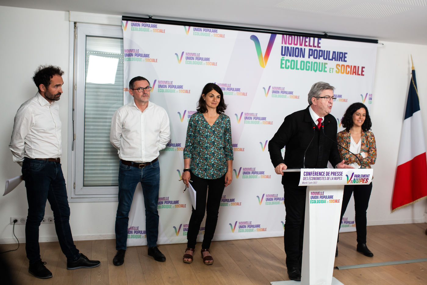 Press conference focused on economic issues with the leader of LFI Jean Luc Melenchon for the legislative elections.