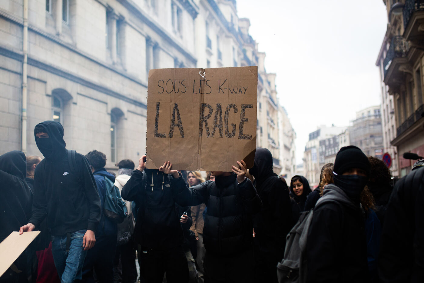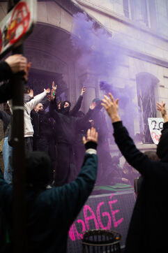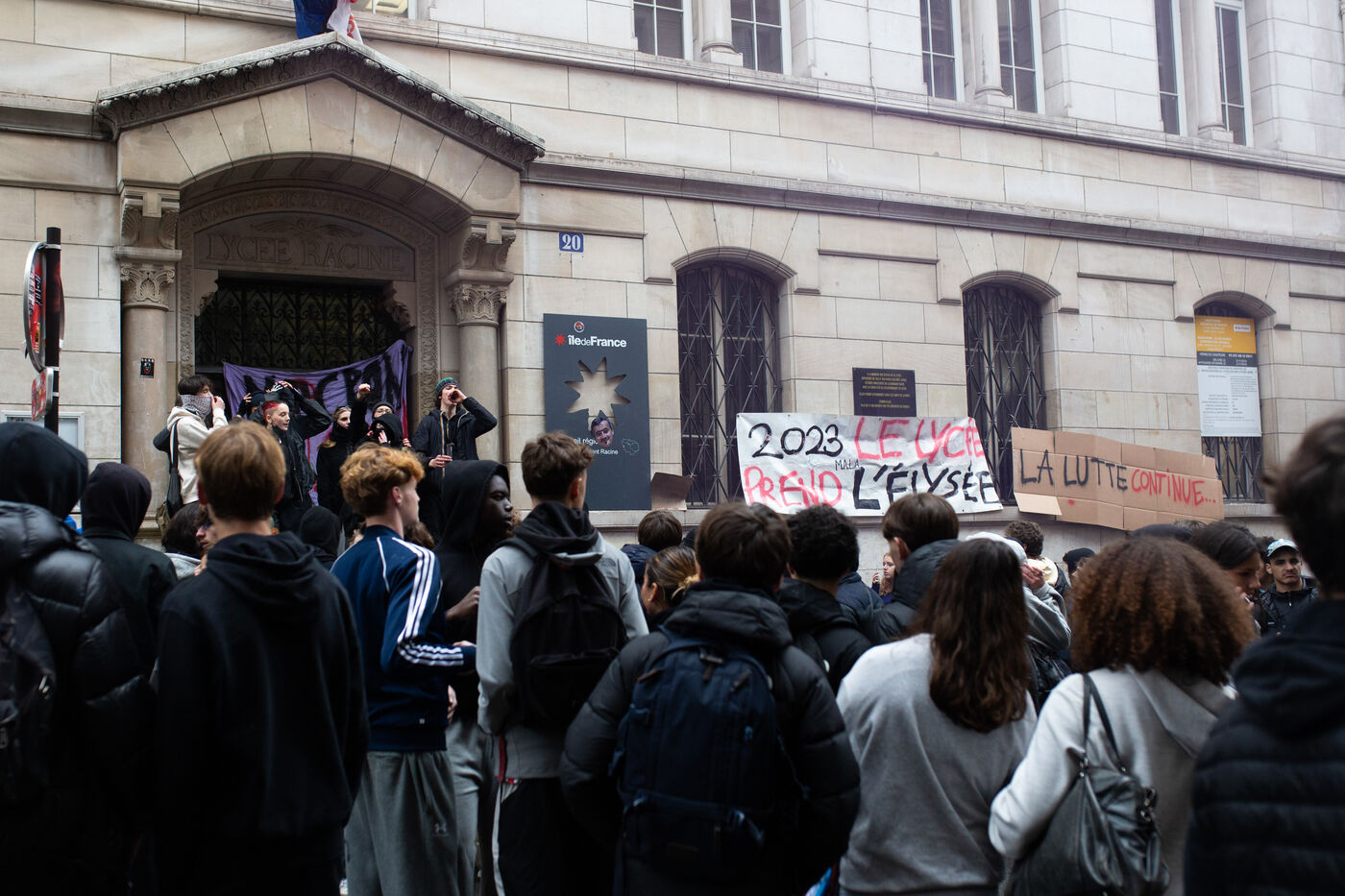 Bloquage du lycée Racine par les lycéens et manifestation inter-syndicale contre la réforme des retraites avec l'arrivé de la nouvelle secretaire générale de la CGT Sophie Binet.