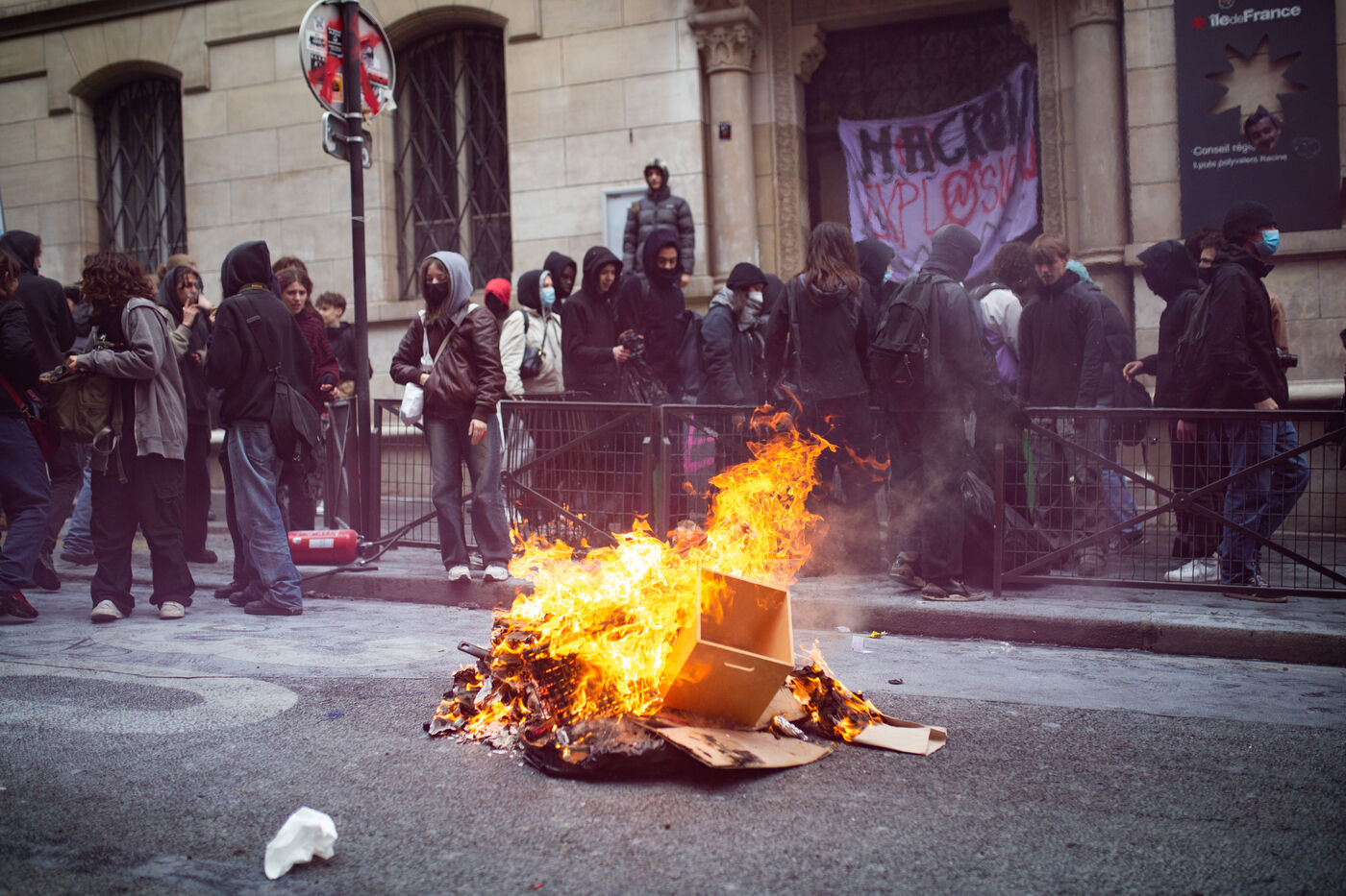 Blockade of the Racine high school by the students and inter-union demonstration against the pension reform with the arrival of the new general secretary of the CGT Sophie Binet.