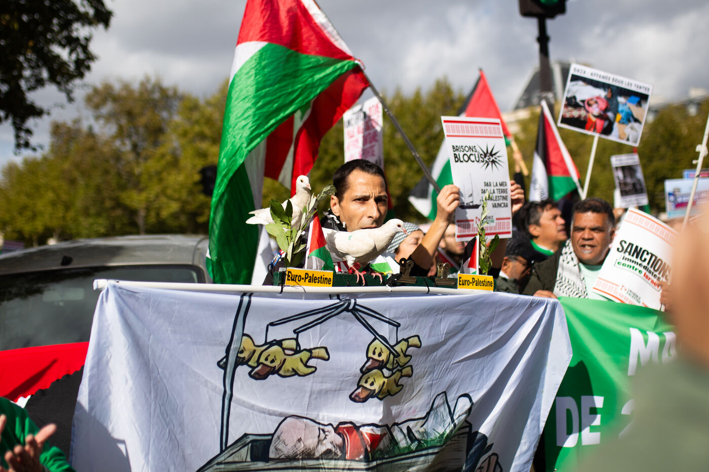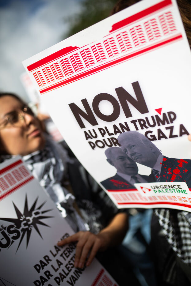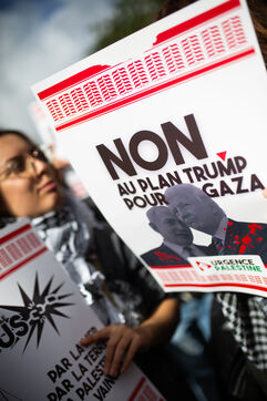 Manifestation pour l'arrêt de la guerre à Gaza et en Cisjordanie, contre le plan de Trump et pour des sanctions contre Israel.