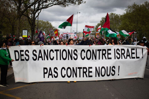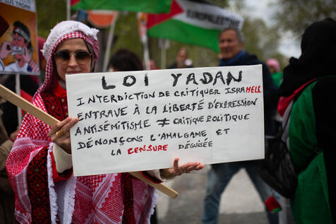 Several hundred protesters marched to denounce Caroline Yadan’s proposed bill, which seeks to conflate opposition to Israel’s policies and Zionism with anti-Semitism.