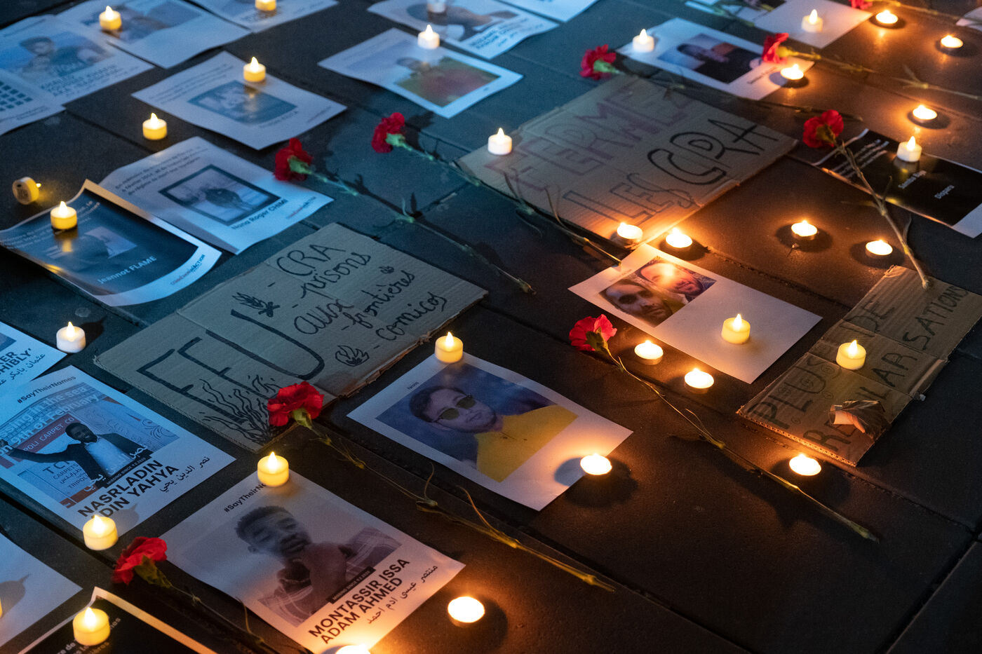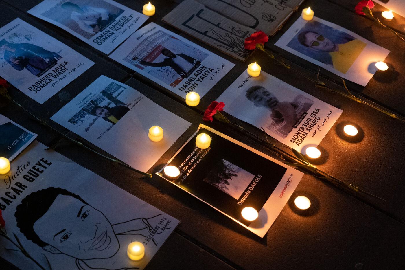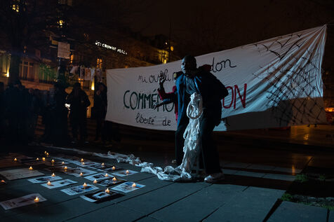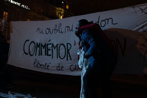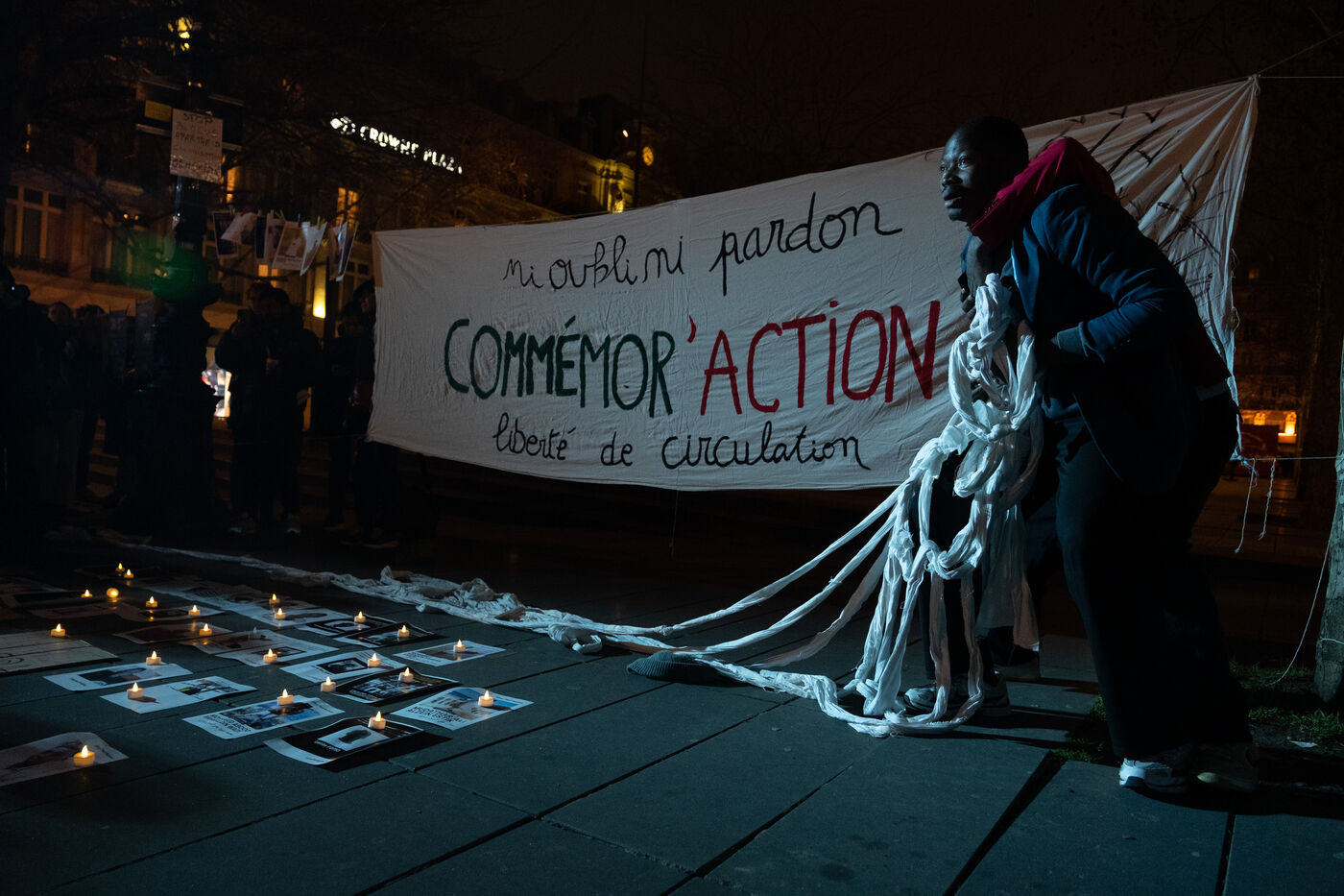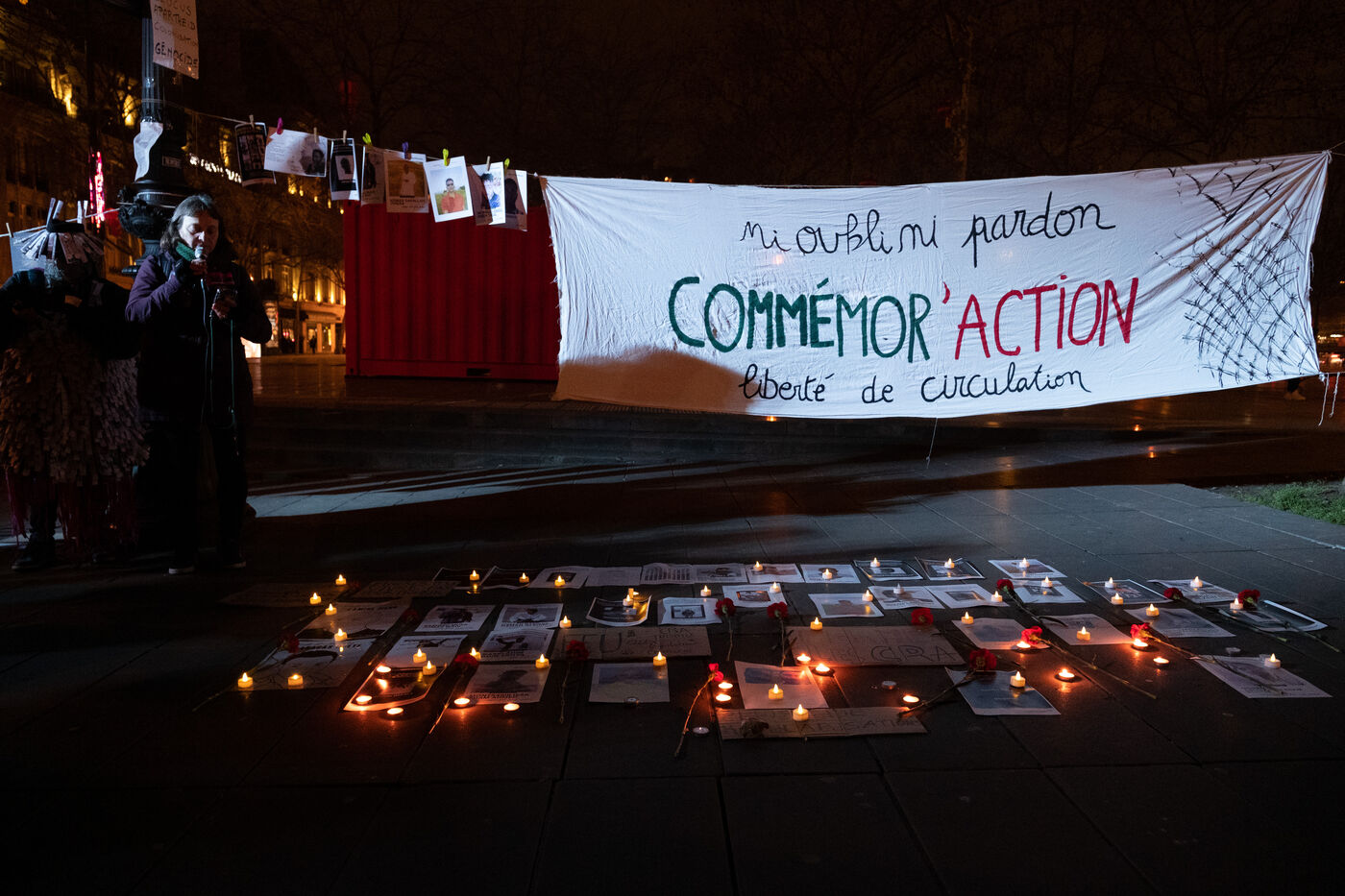 Commemoration rally of the victims of migration policies at the borders at place de la République at Paris the February 6, 2025.