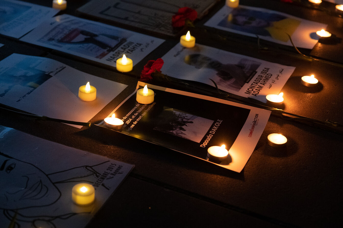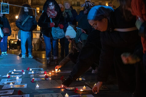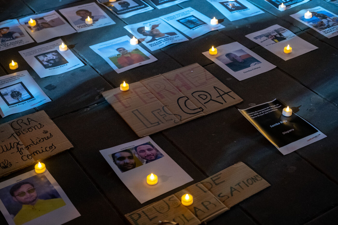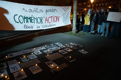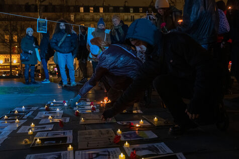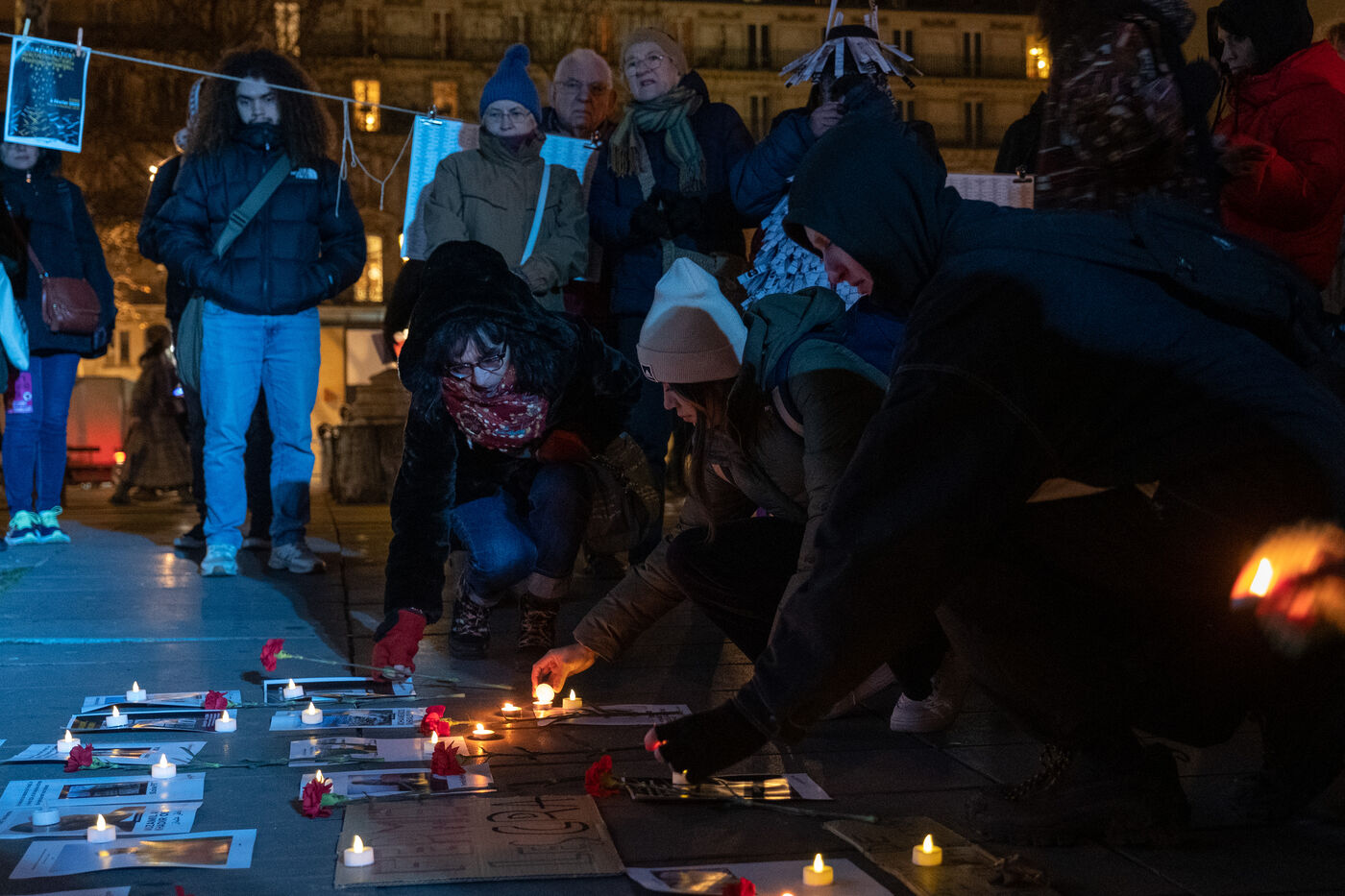 Rassemblement de commémoration des victimes des politiques migratoires aux frontières sur la place de la République à Paris le 6 février 2025.
