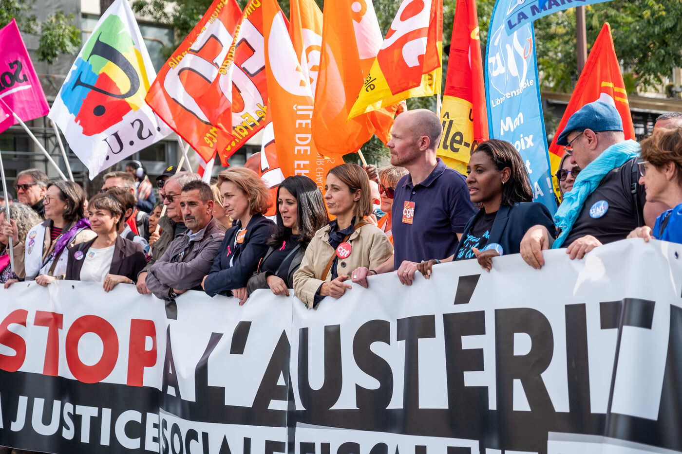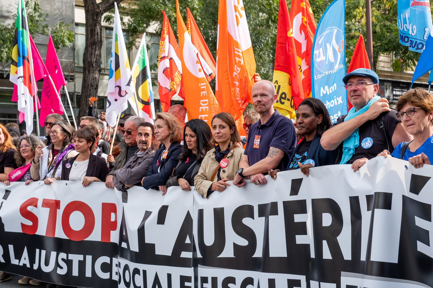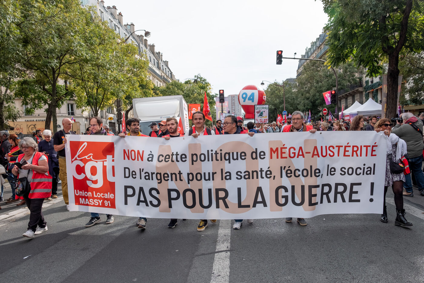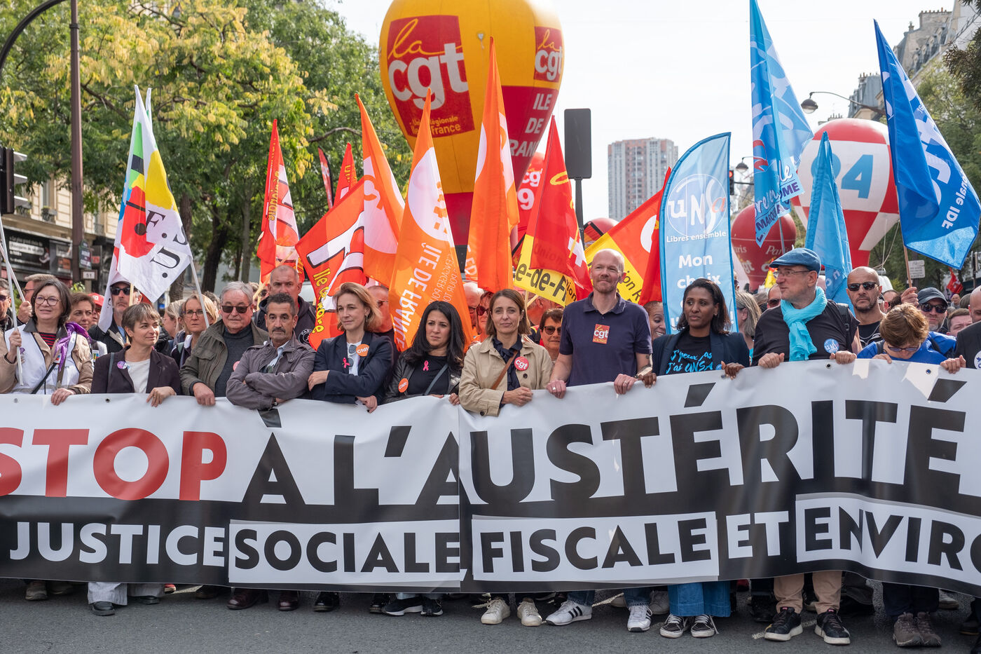 Le 2 octobre 2025 à Paris, Manifestation contre l'austérité à l'appel intersyndicale, pour une justice sociale, fiscale et environnementale.