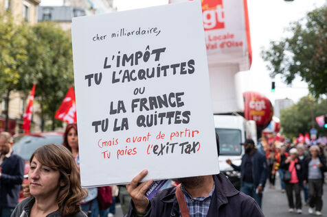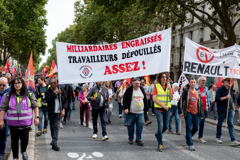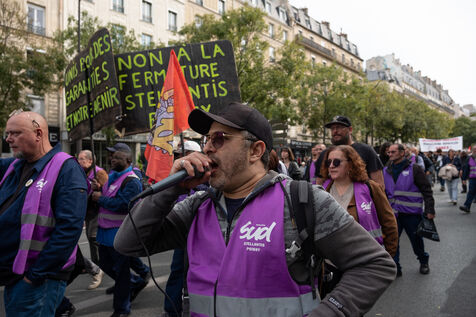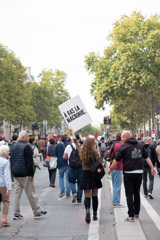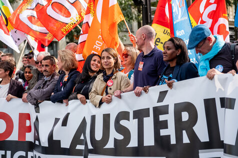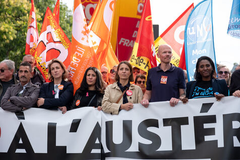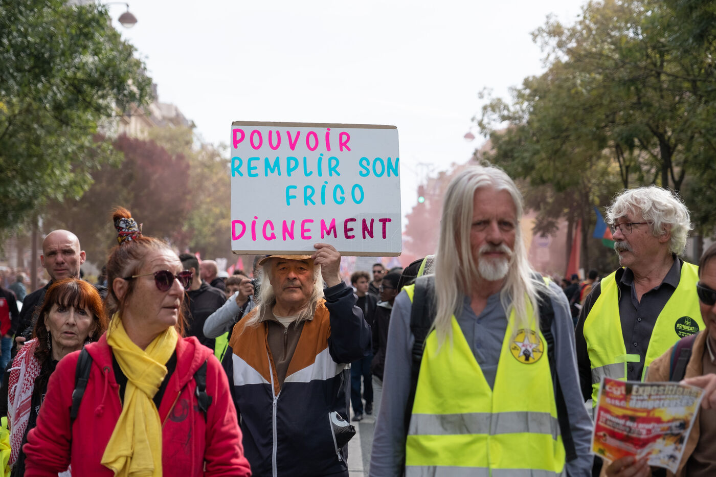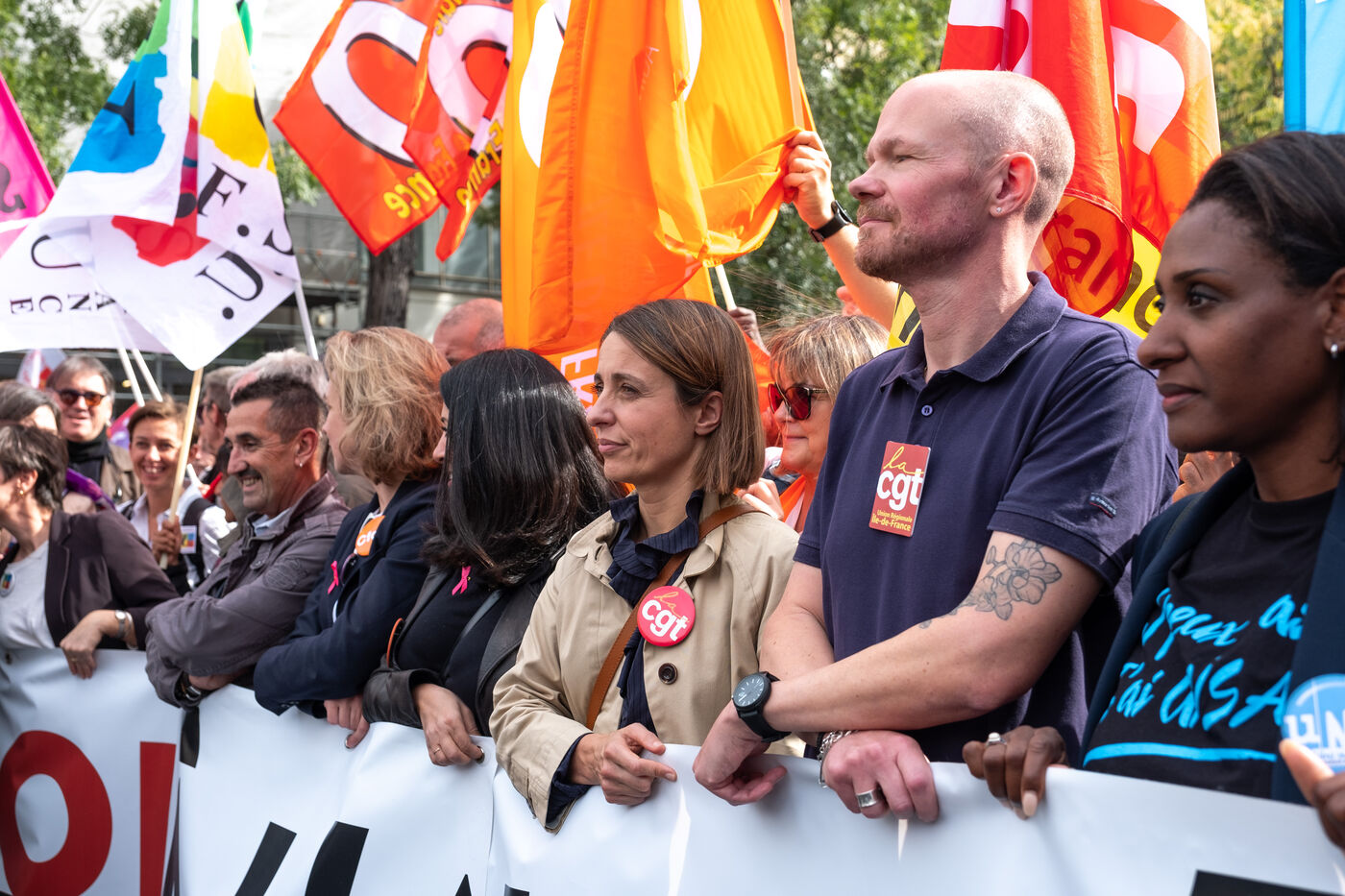 Le 2 octobre 2025 à Paris, Manifestation contre l'austérité à l'appel intersyndicale, pour une justice sociale, fiscale et environnementale.