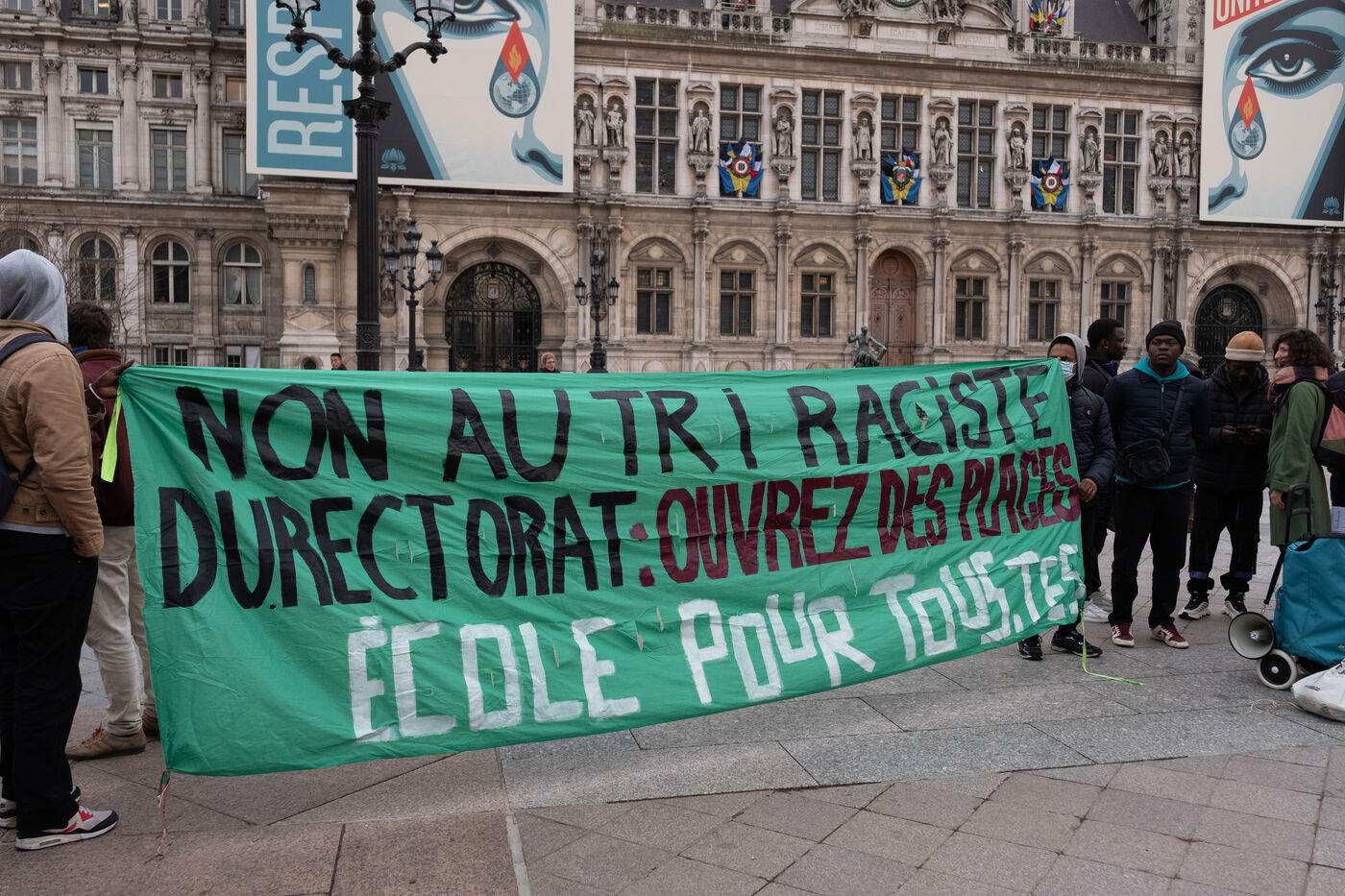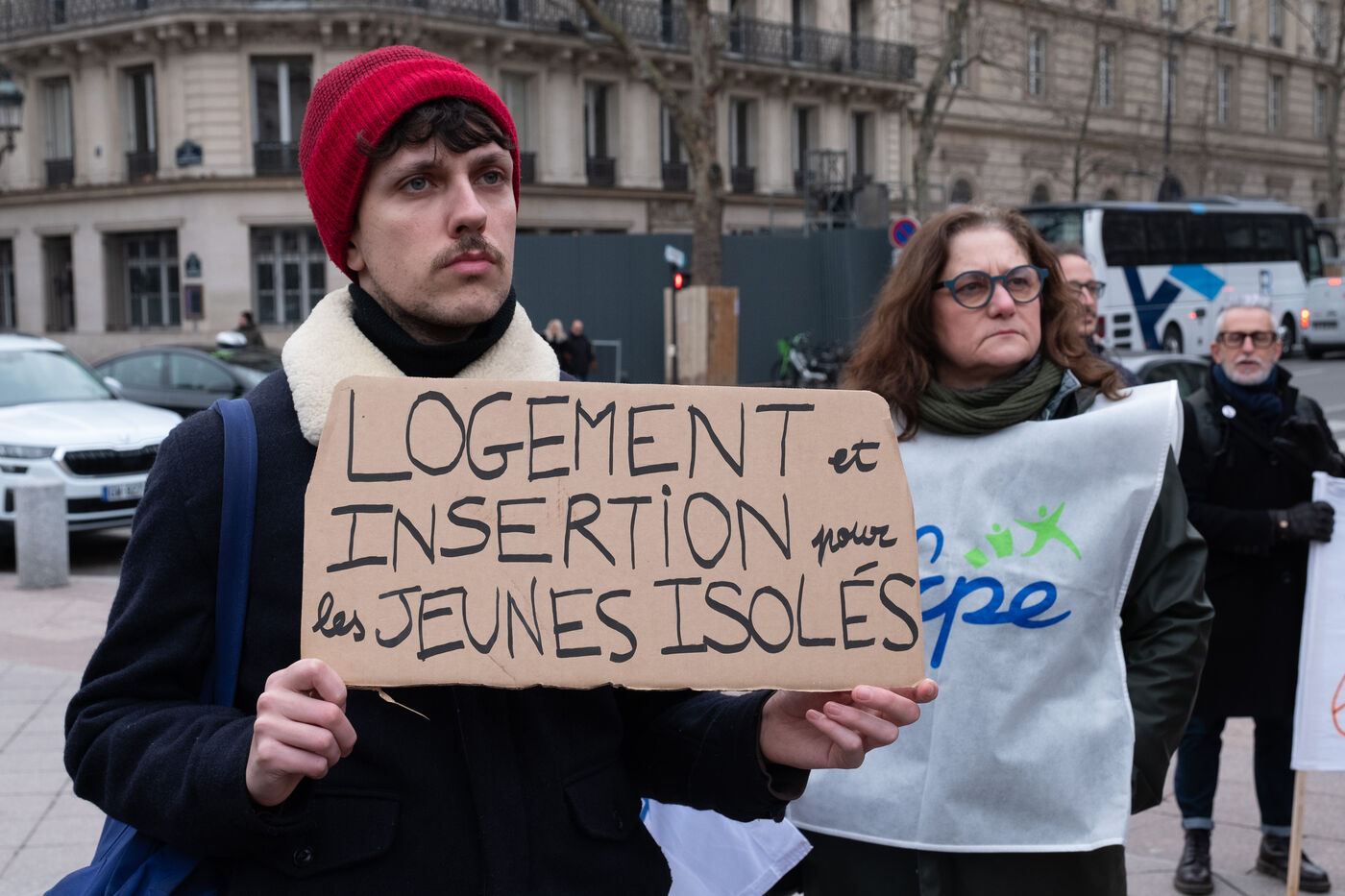 Collectives, associations, unions and young people demonstrated in support of unaccompanied minors in front of the Hôtel de Ville in Paris on January 28, 2026.