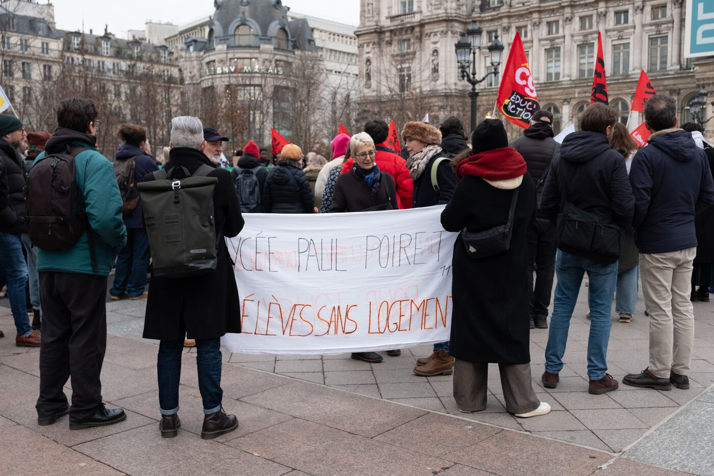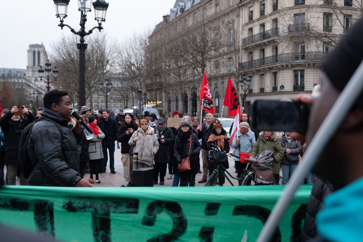 Collectifs, associations, syndicats et jeunes ont manifesté en soutien aux mineurs isolés devant l’Hôtel de Ville à Paris le 28 janvier 2026.