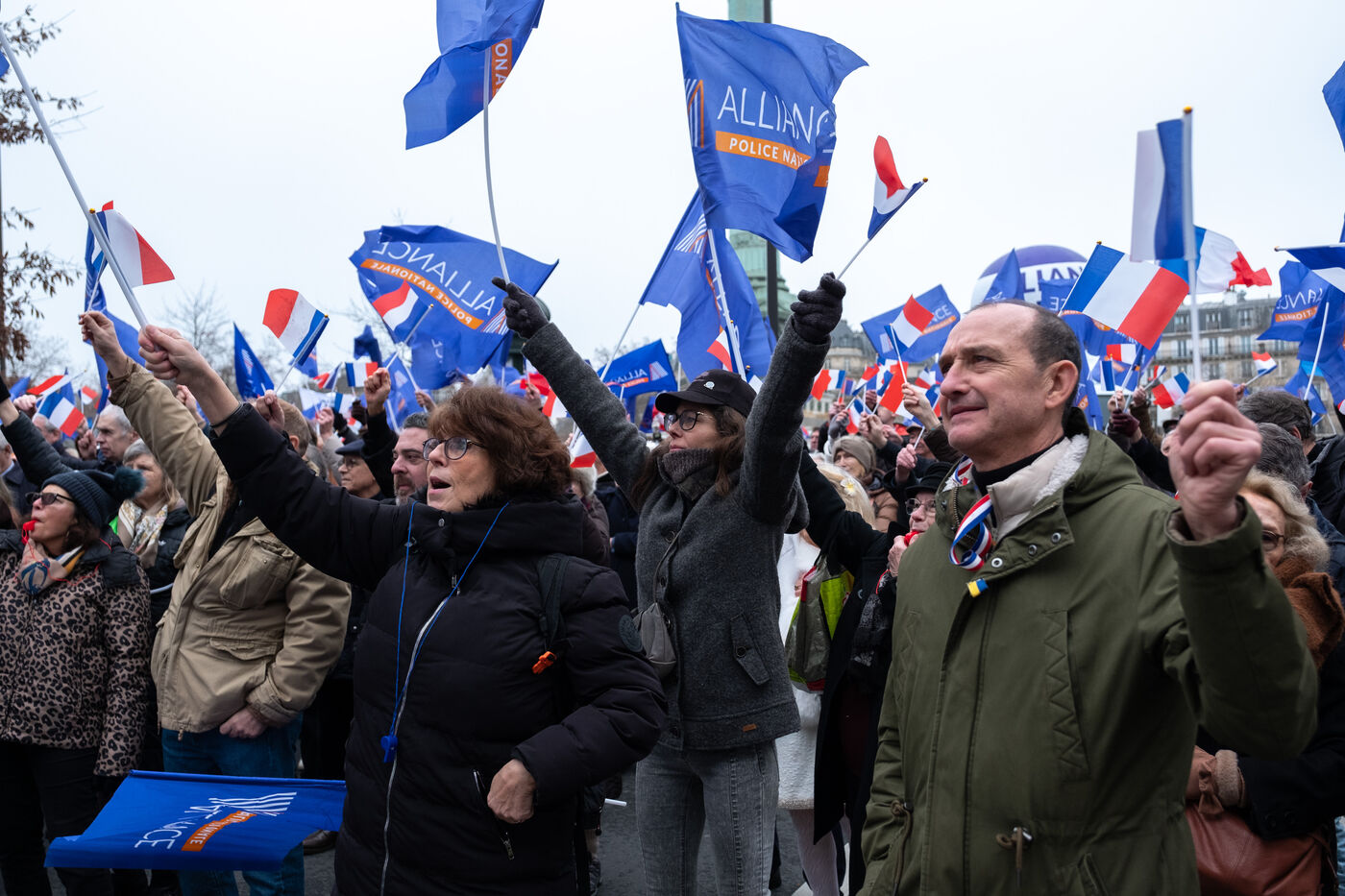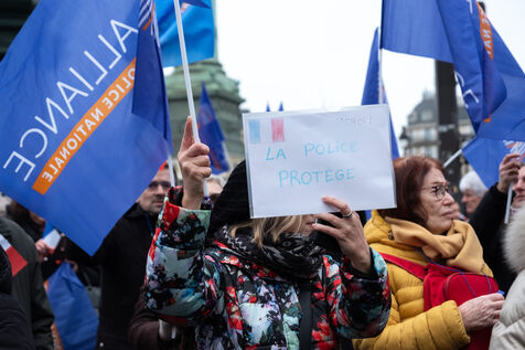Manifestation de policiers à l'appel du syndicat Alliance pour demander plus de moyens et dénoncer leur condition de travail, à Paris le 31 janvier 2026.