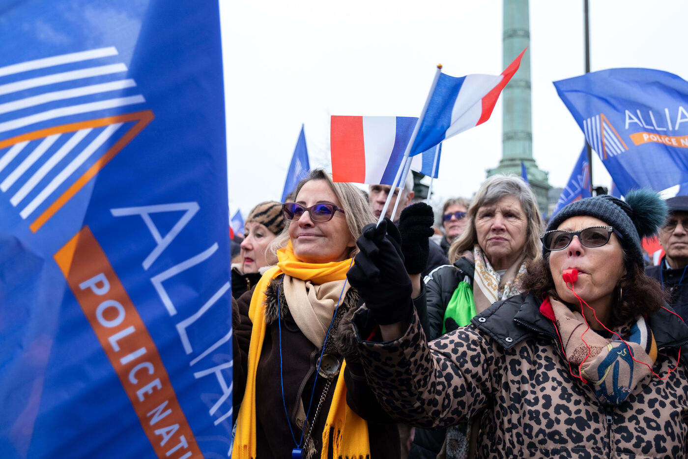 Police officers demonstrate at the call of the Alliance union to demand more resources and denounce their working conditions, in Paris on January 31, 2026.