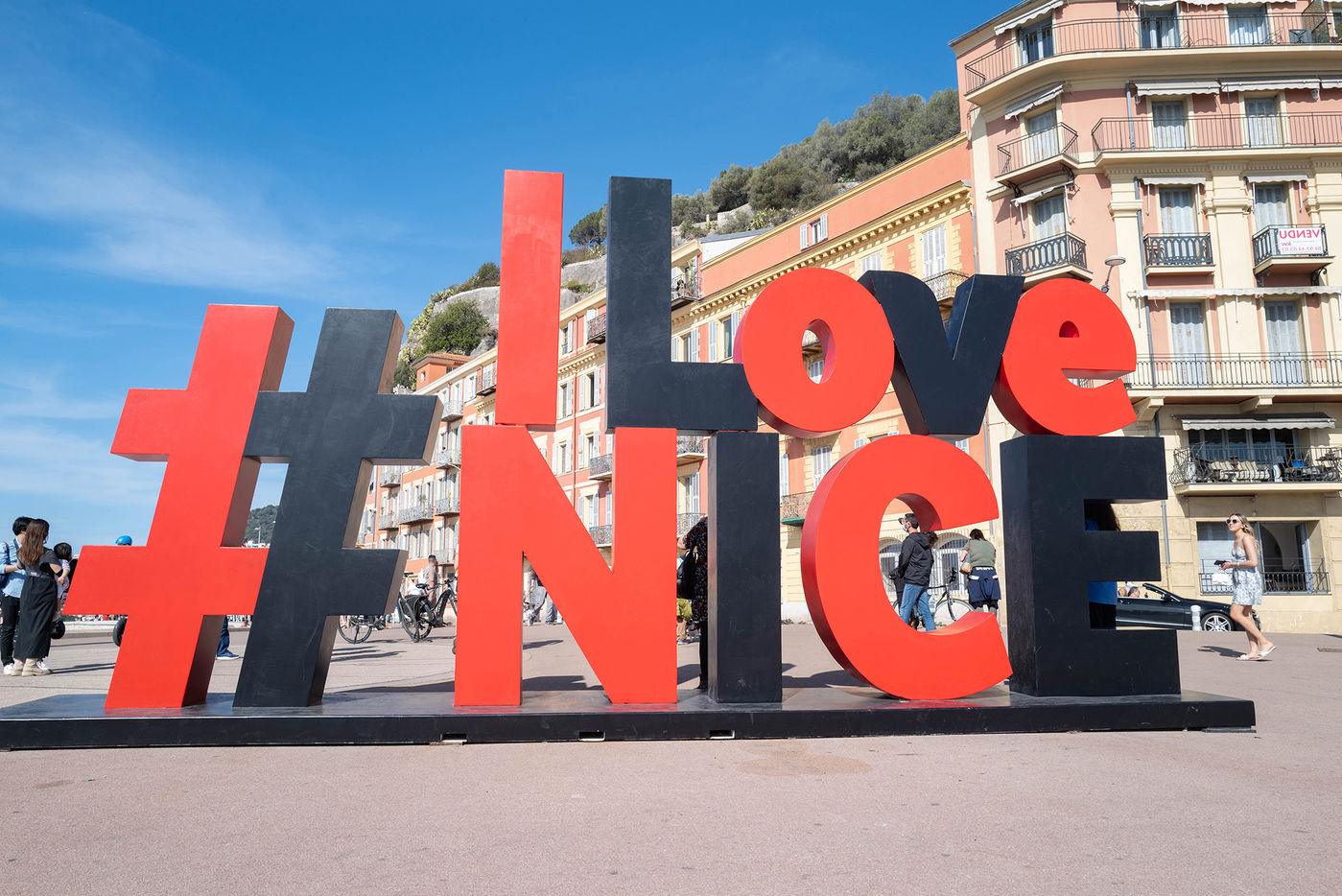 Located on the Rauba-Capeù quay, the structure I love Nice, has been decorated with the colours of OGC Nice, which plays the final of the French Cup against Nantes on Saturday 7 May 2022.
