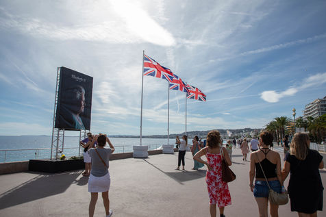 La promenade des Anglais en deuil, la ville de Nice a installé un portrait de la Reine Elisabeth II sur la célèbre promenade, ainsi que sur la facade de la Mairie pour lui rendre hommage, les gens pourrons venir déposer des fleurs durant 15 jours, temps que restera le portrait.