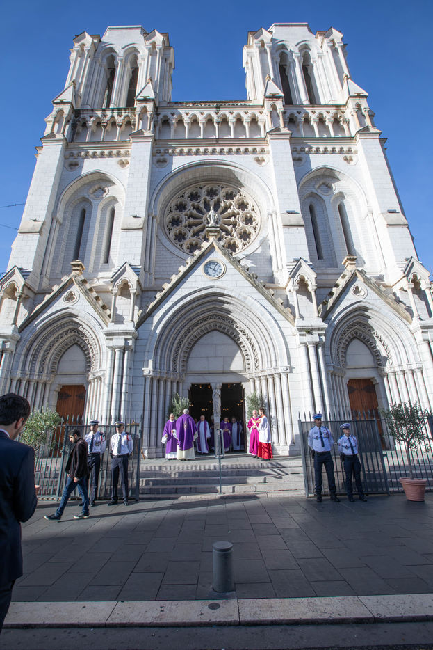 CEREMONY OF HOMAGE TO THE VICTIMS OF THE ATTACK COMMITTED IN THE BASILICA OF NOTRE-DAME DE L'ASSOMPTION IN NICE .