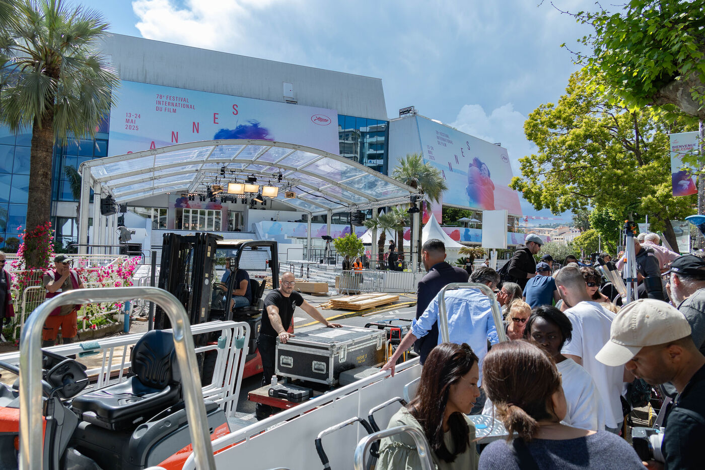 The Cannes Film Festival kicks off tomorrow, with a host of stars announced. The finishing touches to the sets at the Palais des Festivals are almost complete, and the technicians are working hard to finish them off before the opening night on 13 May, even the famous stepladders in front of the palace are in place to the millimetre.