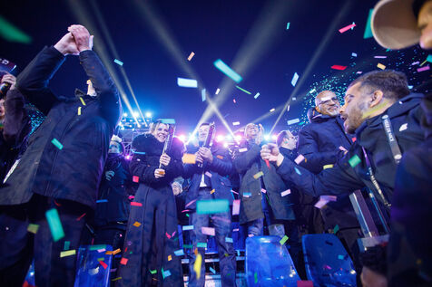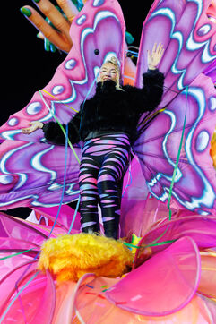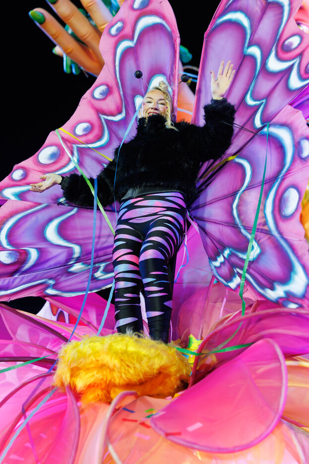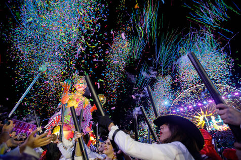 View of the first illuminated parade during the inauguration of the Nice Carnival 2026, Place Masséna. The illuminated floats parade in front of the public for the official launch of the 2026 edition of the carnival, entitled “Long Live the Queen.”