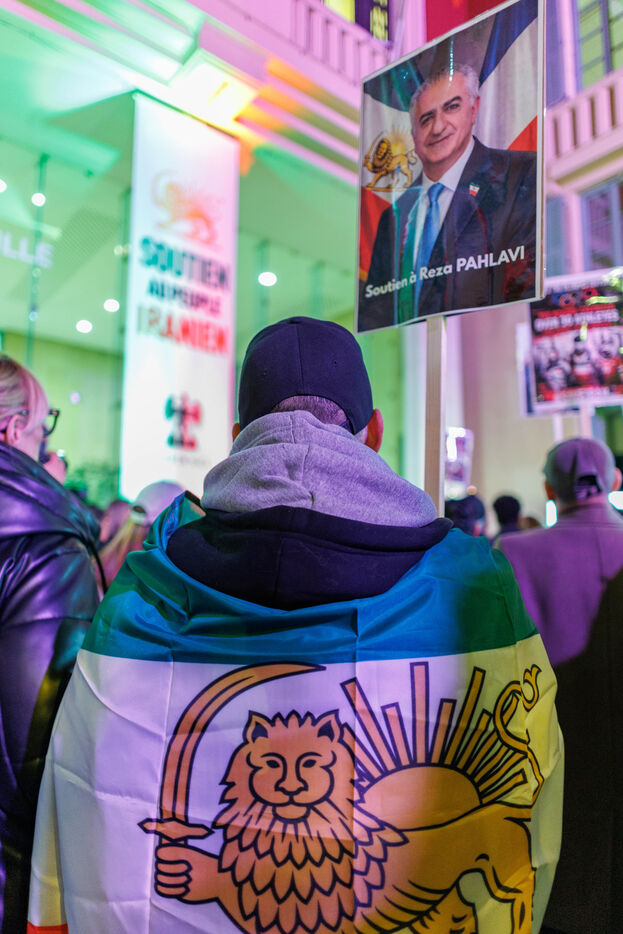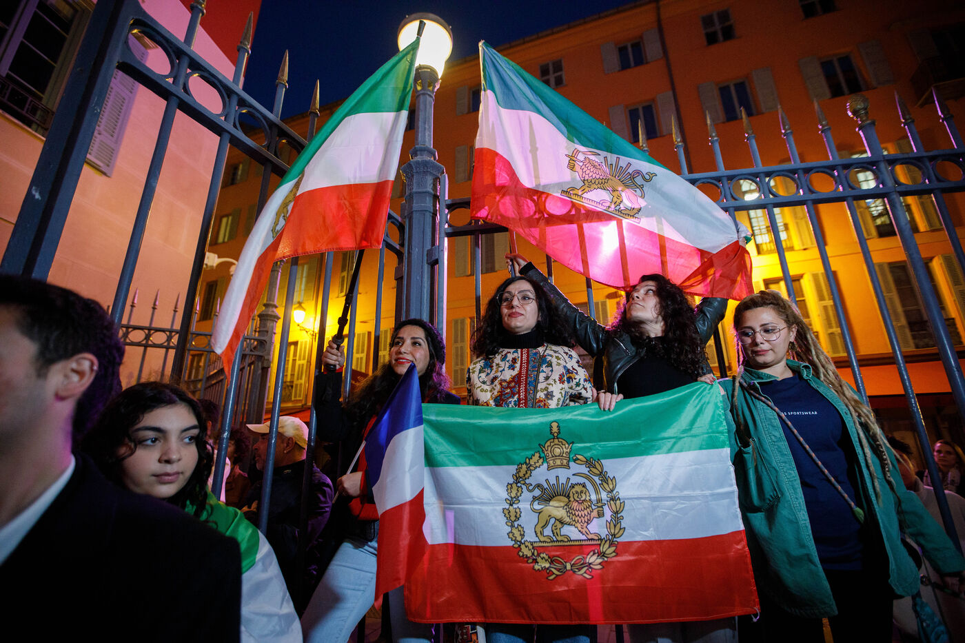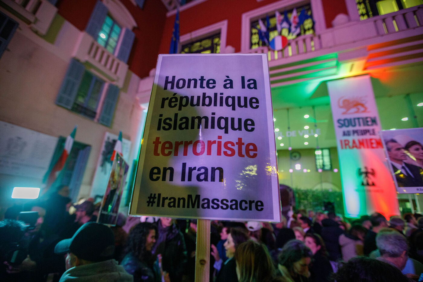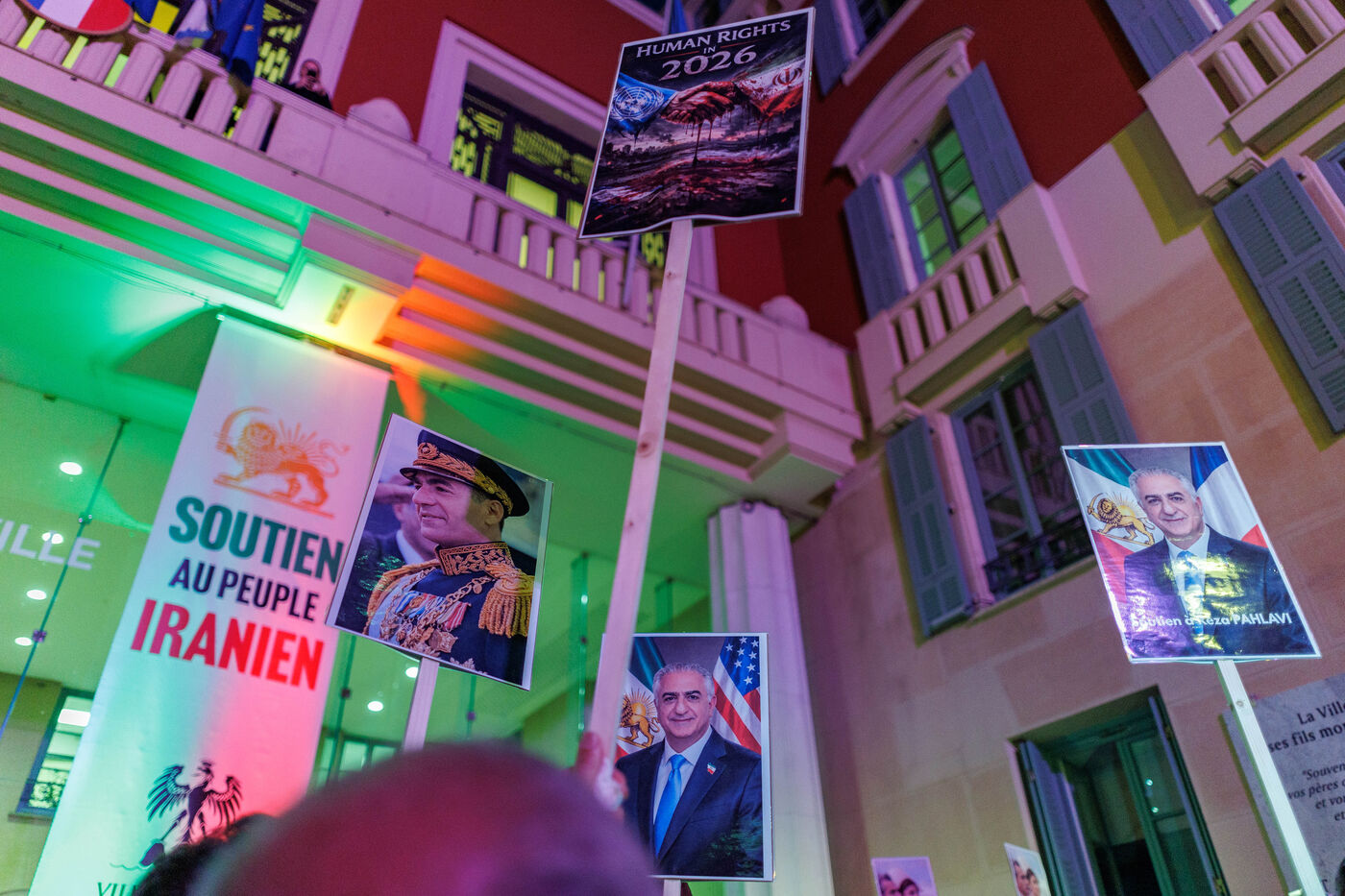 Rally in support of the Iranian people on the steps of Nice City Hall this Monday. The event is being held in the presence of the mayor of Nice, president of the Nice Côte d'Azur Metropolis, and members of the City Council. The municipality had previously displayed the colors of Iran on the facade of City Hall to express its solidarity with Iranians engaged in their struggle for freedom.