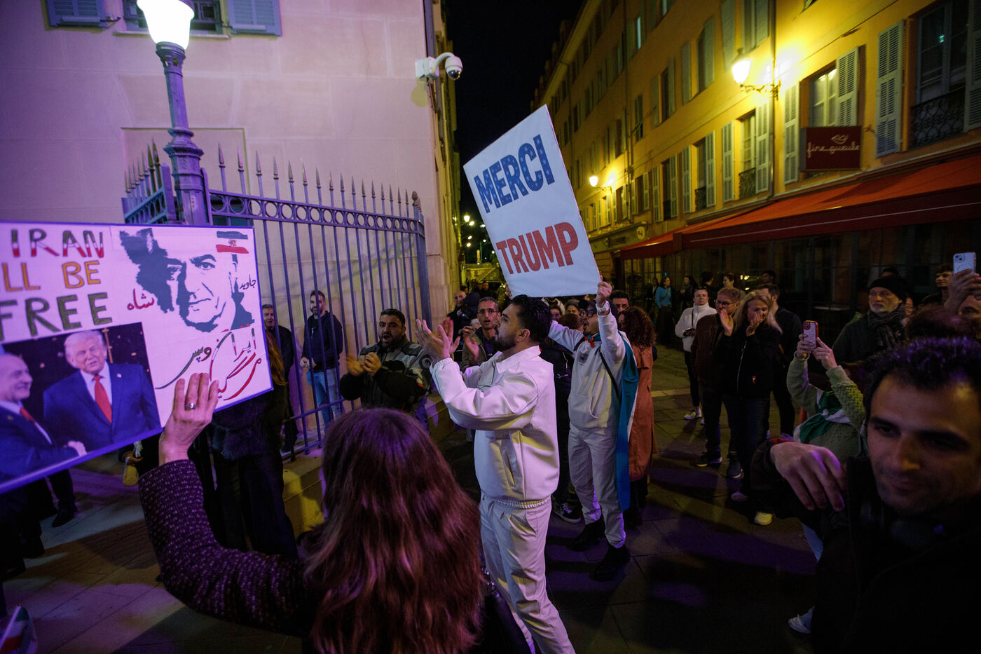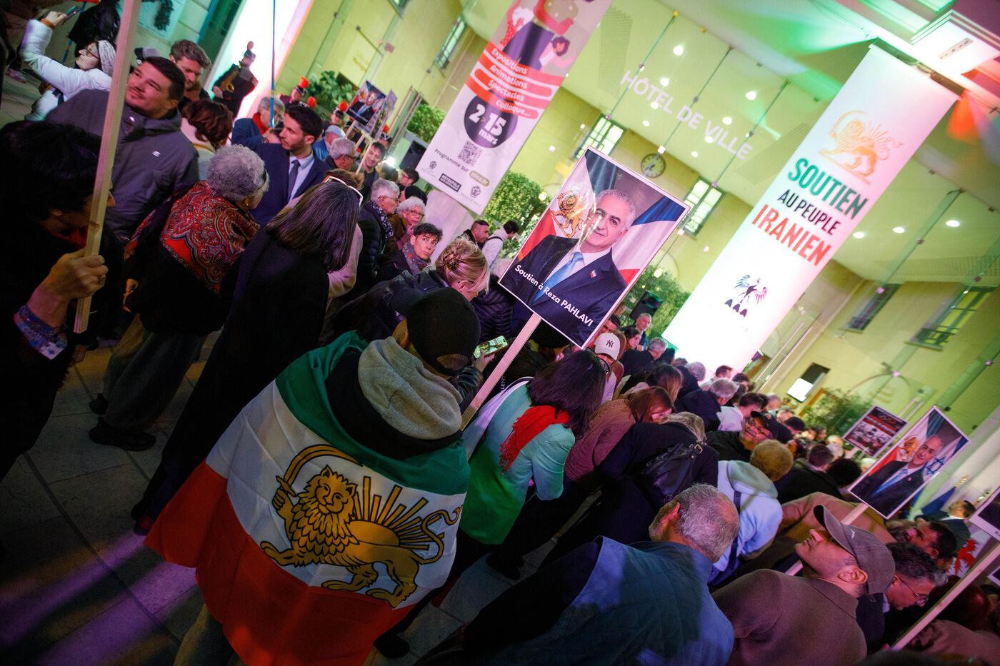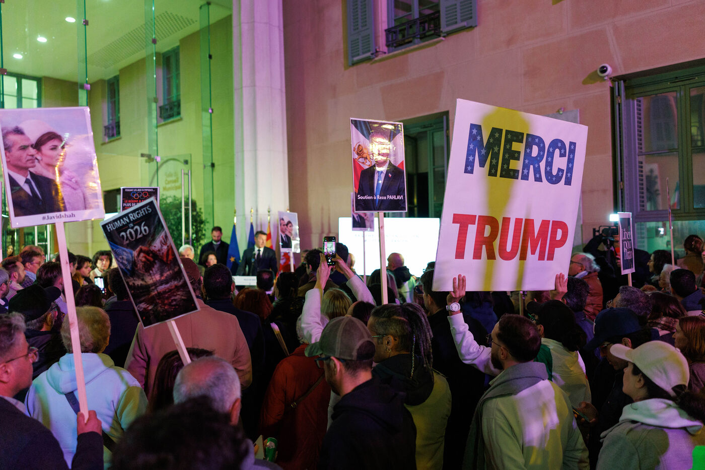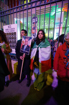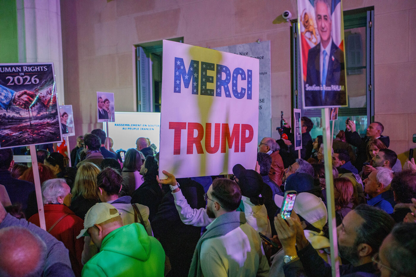 Rally in support of the Iranian people on the steps of Nice City Hall this Monday. The event is being held in the presence of the mayor of Nice, president of the Nice Côte d'Azur Metropolis, and members of the City Council. The municipality had previously displayed the colors of Iran on the facade of City Hall to express its solidarity with Iranians engaged in their struggle for freedom.