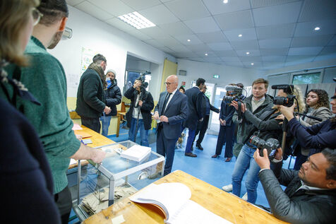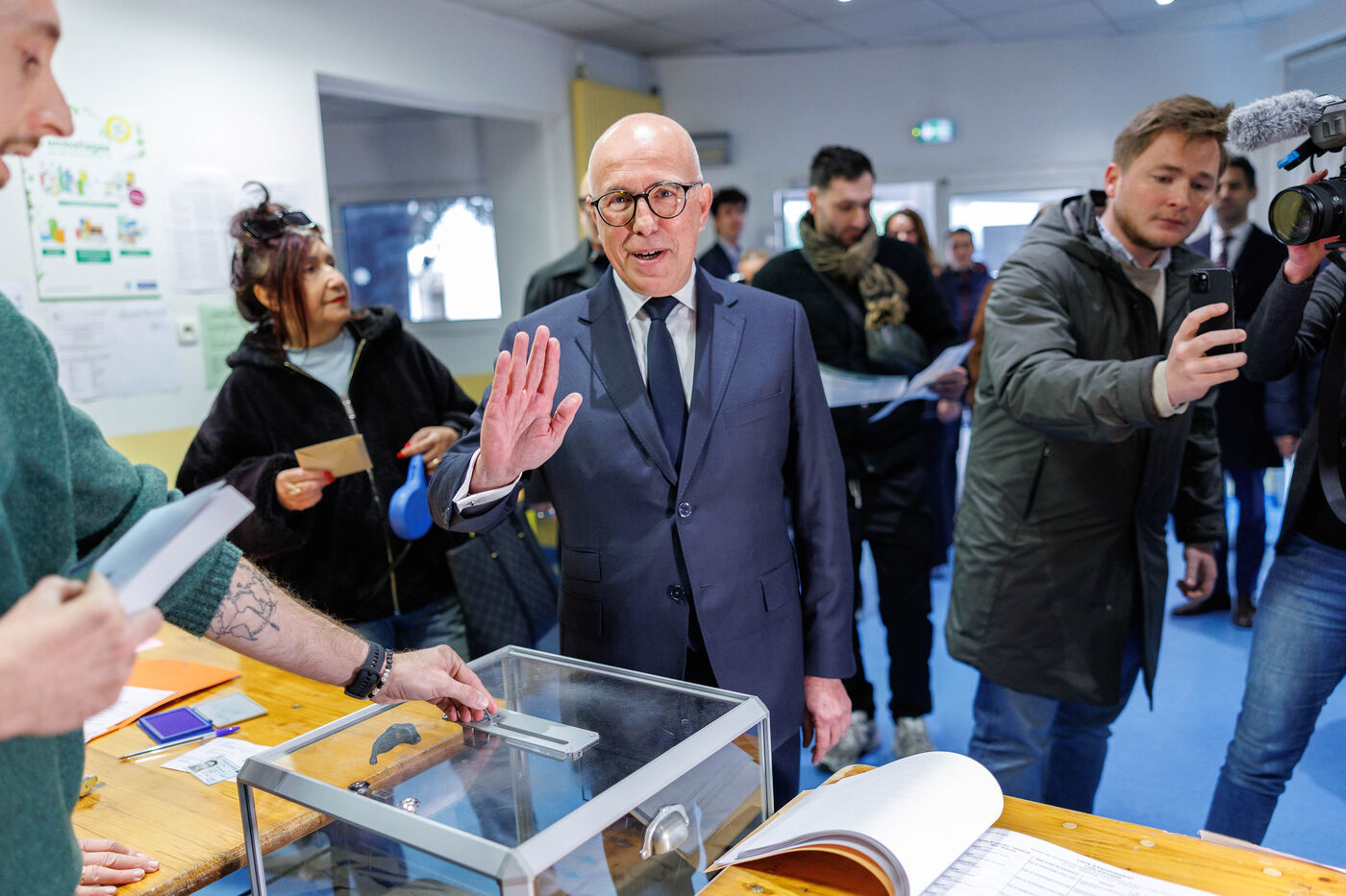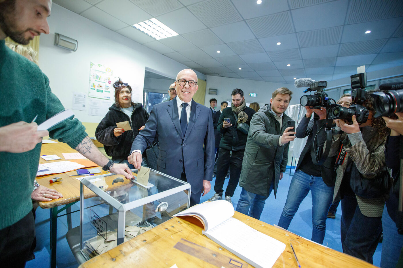 Eric Ciotti, MP for Alpes-Maritimes and candidate for mayor of Nice, casts his vote at a polling station in Nice during the local elections this Sunday, for the first round of the local elections.