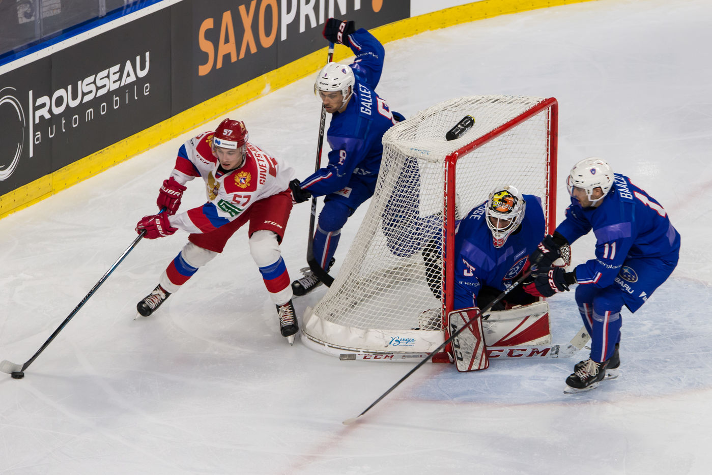 Hockey sur glace, Match International masculin entre France et Russie pour la préparation au Championnat du Monde Elite 2019. Aren'Ice, Cergy-Pontoise, 13 avril 2019.