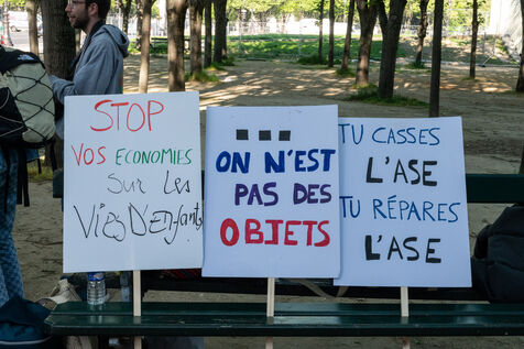 Rally to demand improvements to child welfare (Aide social à l’enfance) in front of the french National Assembly in Paris. The Children in Places Vigilance Committee organize a mobilization to publicly react to the conclusions of the report of the Commission of Inquiry into the failures of public child protection policies.