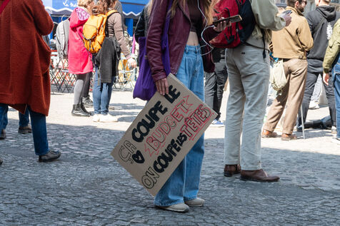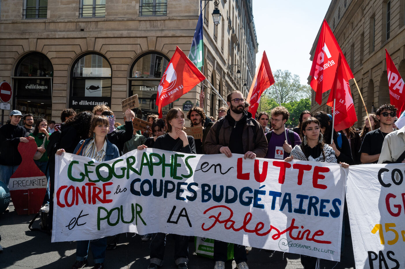 Demonstration by students from the faculties of the University of Paris (Université de Paris) on the Place de l'Odeon in Paris.