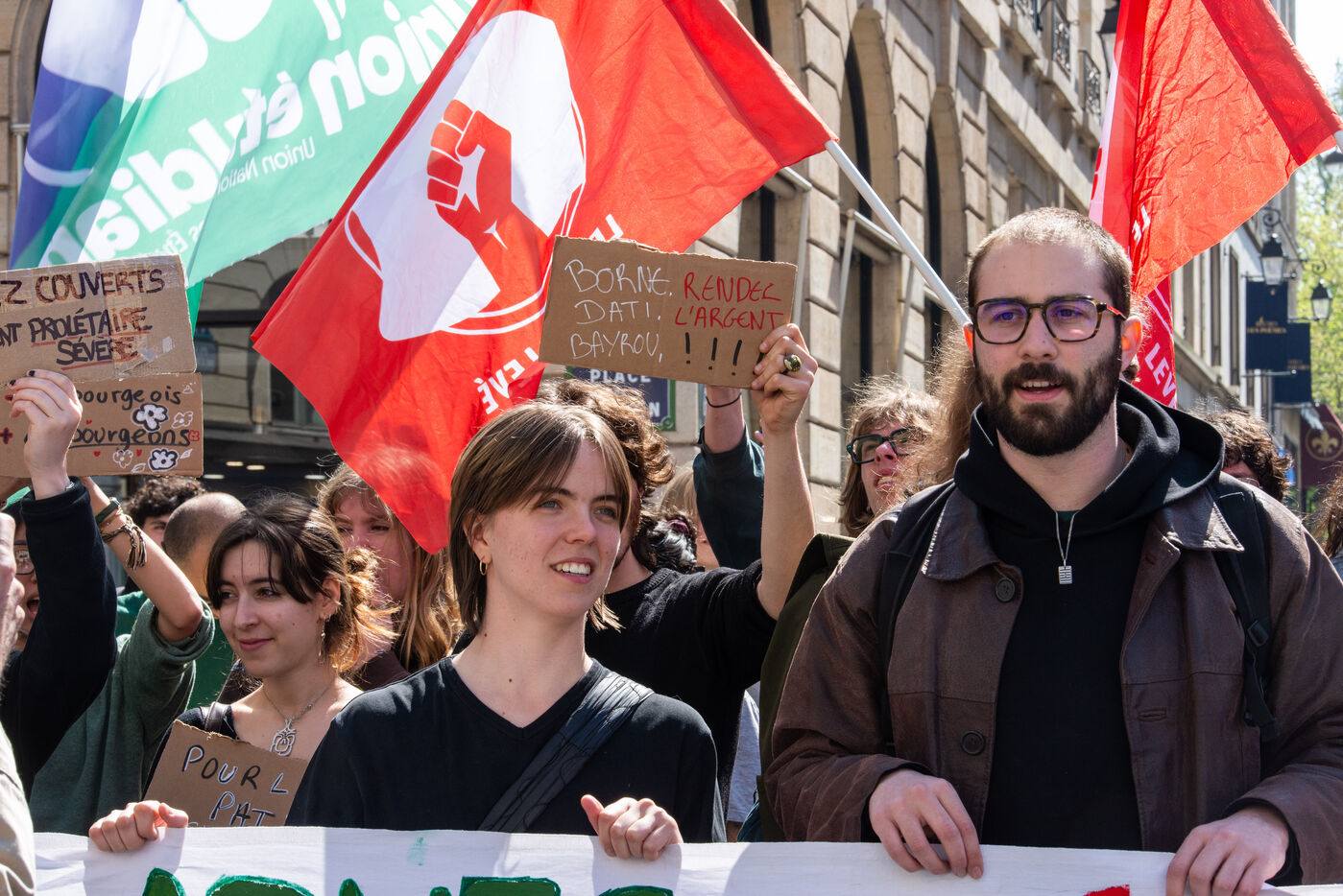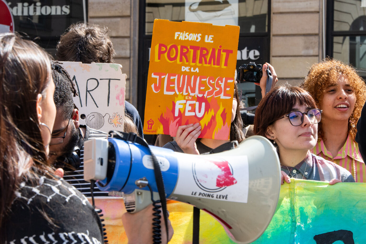 Manifestation des étudiants des facultés de l'Université de Paris sur la Place de l'Odeon à Paris.