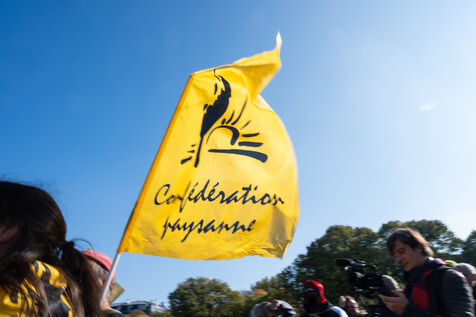 Manifestation de la Confédération paysanne contre l'accord UE-Mercosur sur l'esplanade des Invalides à Paris. La Confédération paysanne se mobilise à Paris contre l’accord UE-Mercosur, paysans et associations défilent craignant un impact mortifère sur la souveraineté alimentaire.