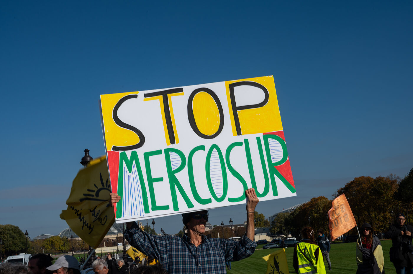 The Confederation paysanne protests against the EU-Mercosur agreement on the Esplanade des Invalides in Paris. The Confederation paysanne is mobilizing in Paris against the EU-Mercosur agreement, with farmers and associations marching, fearing a deadly impact on food sovereignty. A mobilization against the proposed agreement between the European Union and Mercosur countries, several Latin American countries.