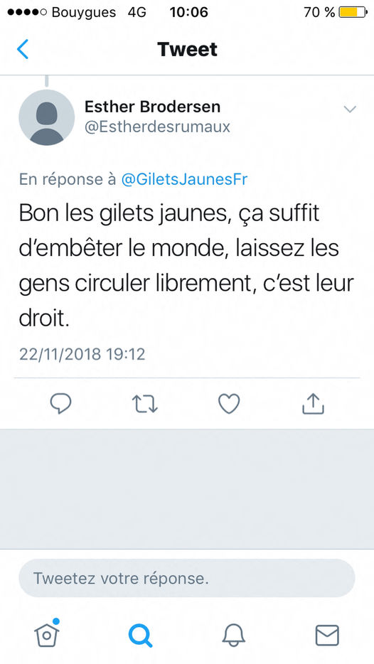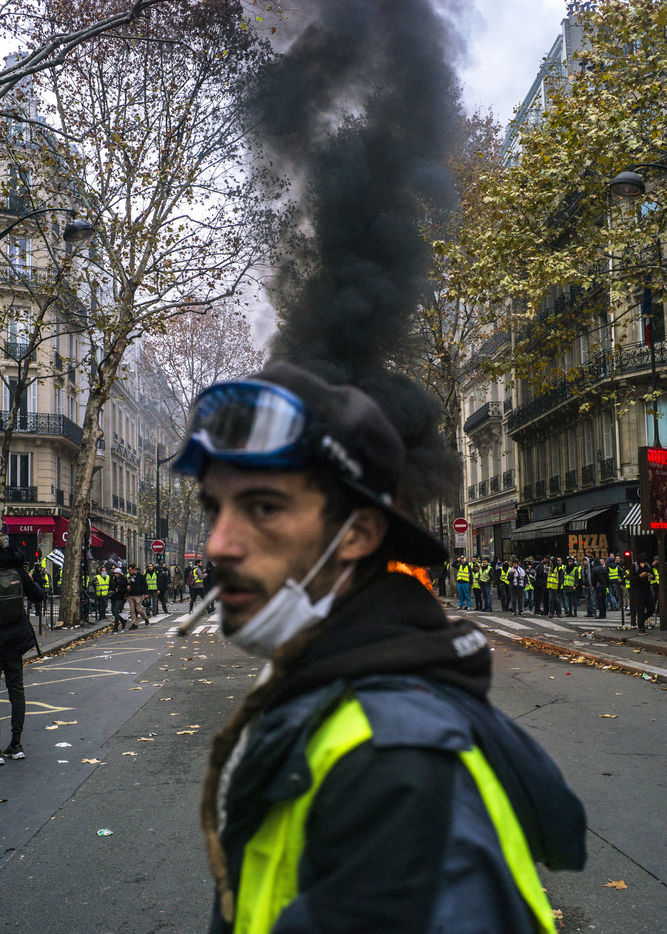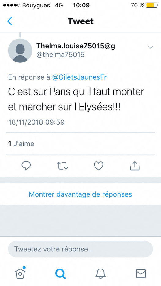 Le 24 novembre 2018, dès l'aube de nombreux manifestants convergent vers les Champs Elysées malgré l'interdiction des autorités. A 10h06 , les premiers slogans hostiles au président de la République commencent à résonner sur la place de l'Etoile. Les commentaires et les post #Gilet_Jaune fussent sur les réseaux sociaux comme depuis quelques semaines suite aux actions menées dans la toute la France. Des messages de tout bord sont partagés - pour, contre, solidaire, moqueur - les internautes expriment leurs sentiments, leurs opinions et tout ce qui leurs passent par la tête. A 10h41 les premiers heurts entre les CRS et les Gilets jaunes près de l'avenue Matignon sont relayés sur les réseaux sociaux et par la presse. Pour une deuxième journée de mobilisation à Paris, plus de 8000 personnes se sont rassemblés sur les Champs Elysées et ses environs. Nombreux d'entre eux se sont heurtés aux forces de l'ordre, détruisant le mobilier urbain, des terrasses et des véhicules - les affrontements se finiront tard dans la soirée. Les débordements ont fait vingt-quatre blessés, dont 5 parmi les forces de l'ordre. Le lendemain de plusieurs annonces sur les réseaux sociaux appelaient à un prochain rassemblement dans la capitale, le 1 décembre.