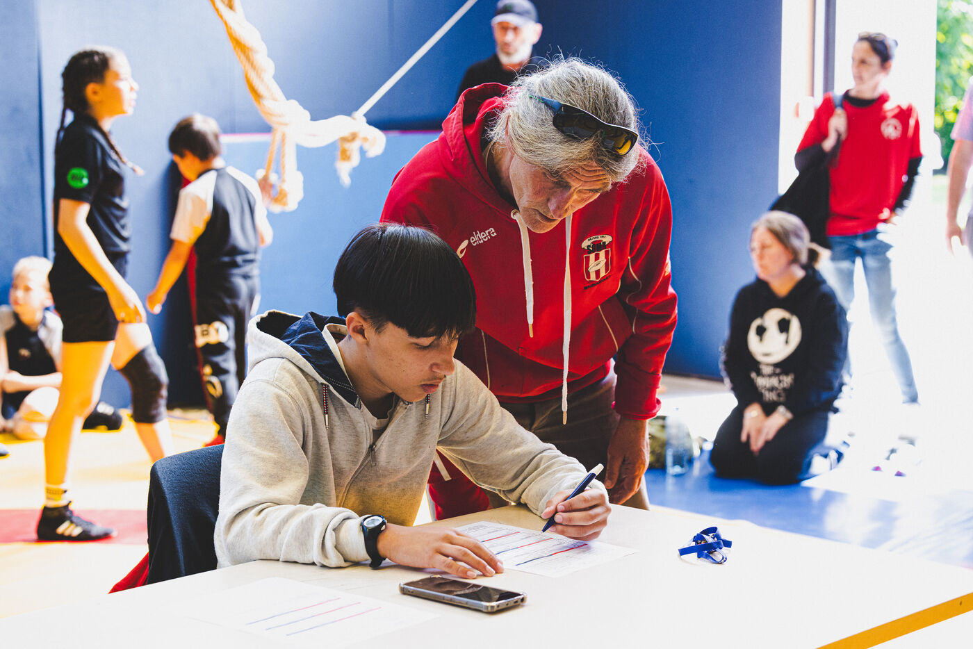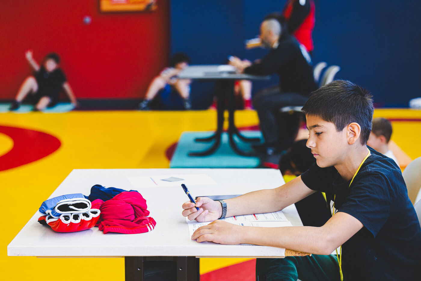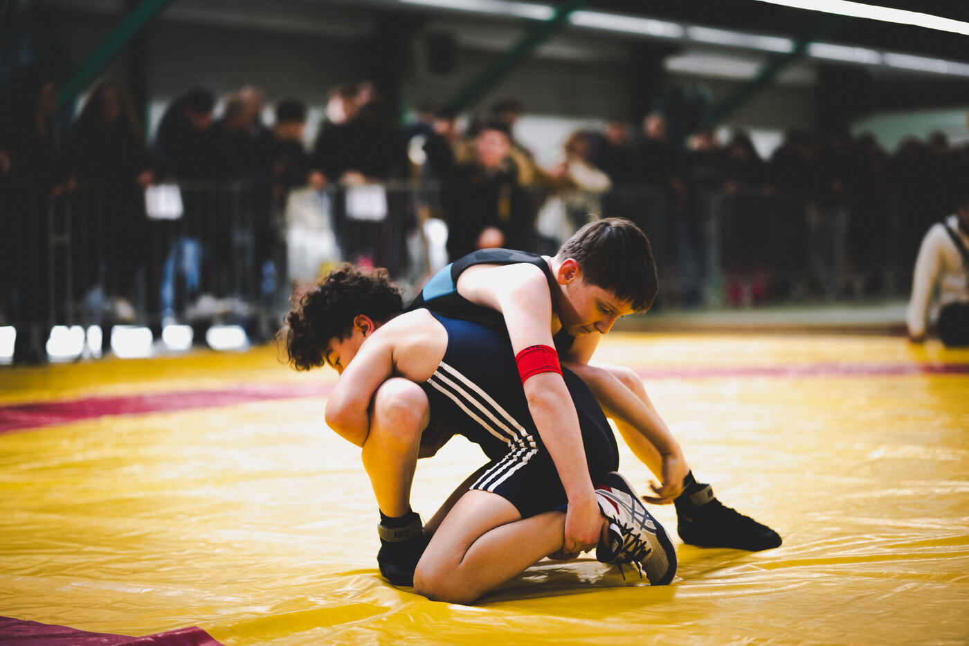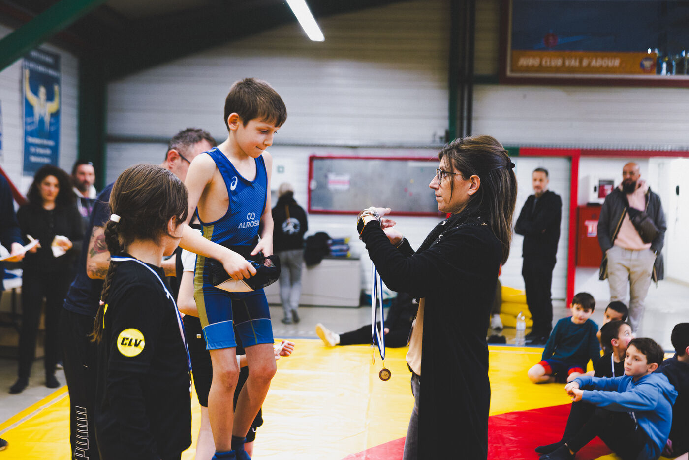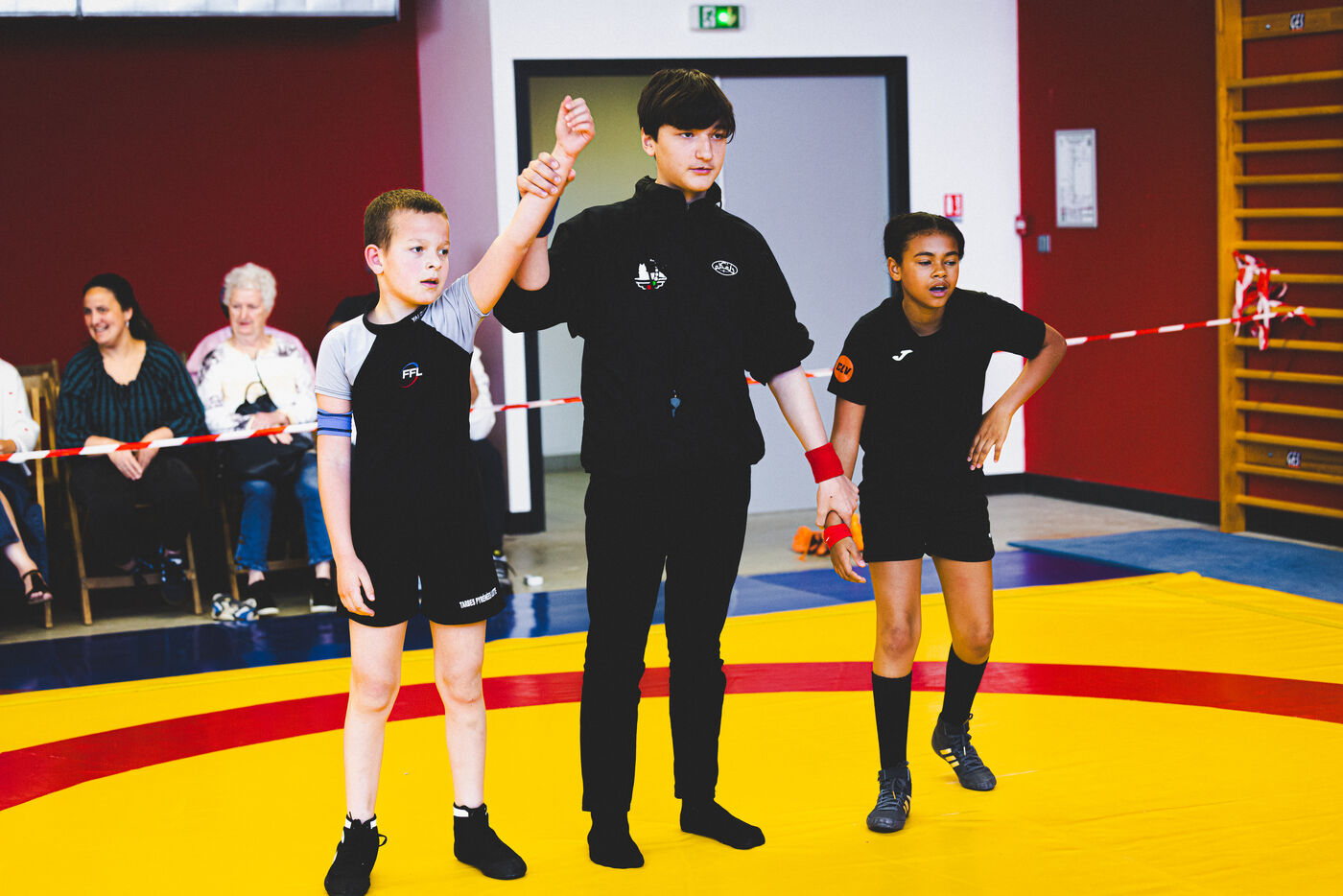 This series shows various wrestling competitions in Bigorre, South-West of France. Maubourguet and Vic-en-Bigorre Wrestling Club hosted competitions bringing together around one hundred junior wrestlers from clubs in Occitanie, including Montauban, Toulouse, Tarbes, Maubourguet, and Vic-en-Bigorre. Girls and boys competed in often spectacular mixed matches in front of their families. This sport, which attracts a diverse audience in Occitanie, benefits from the experience and wrestling culture of coaches of Chechen origin. The development of the Bigourdane school of wrestling is greatly indebted to the late Charly Cancel, a national referee and regional and departmental wrestling administrator, whose sons have continued his work in the Bigorre region.