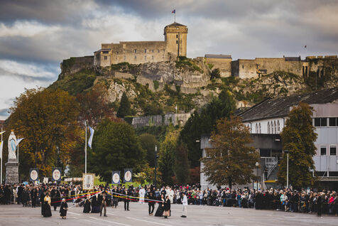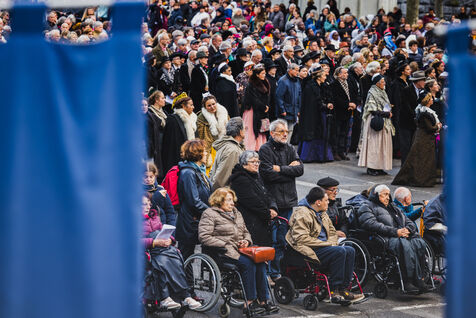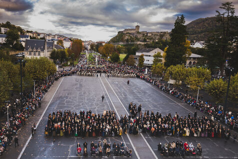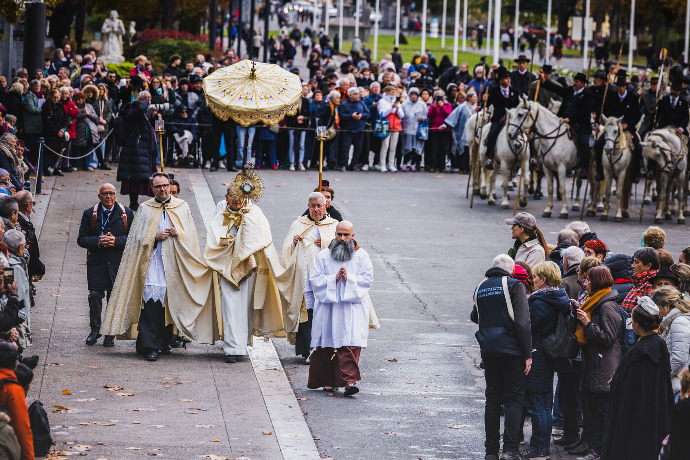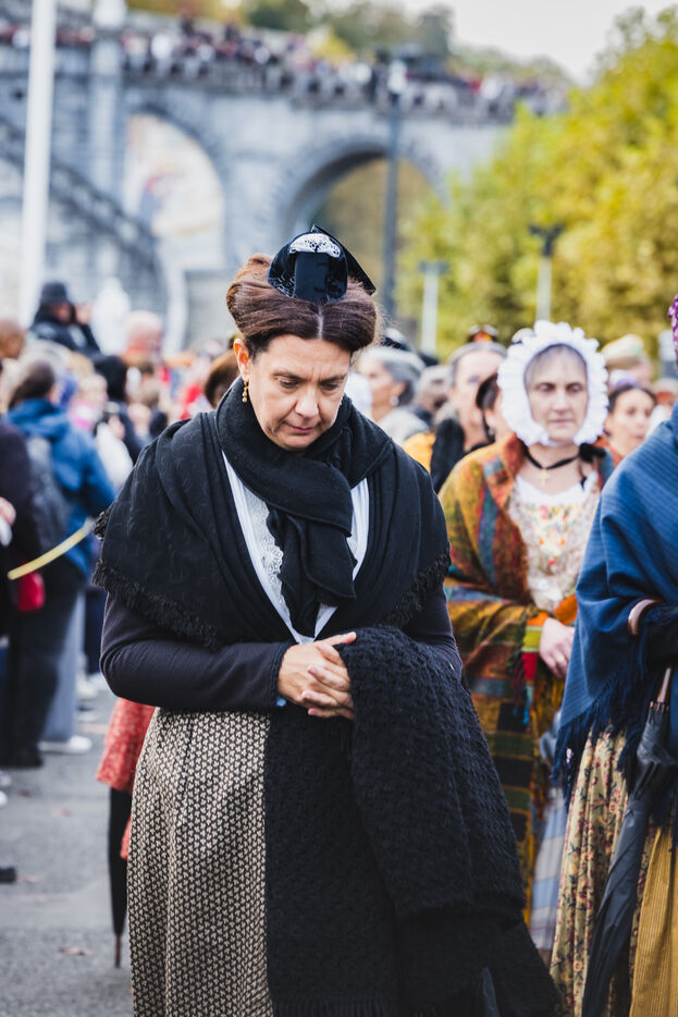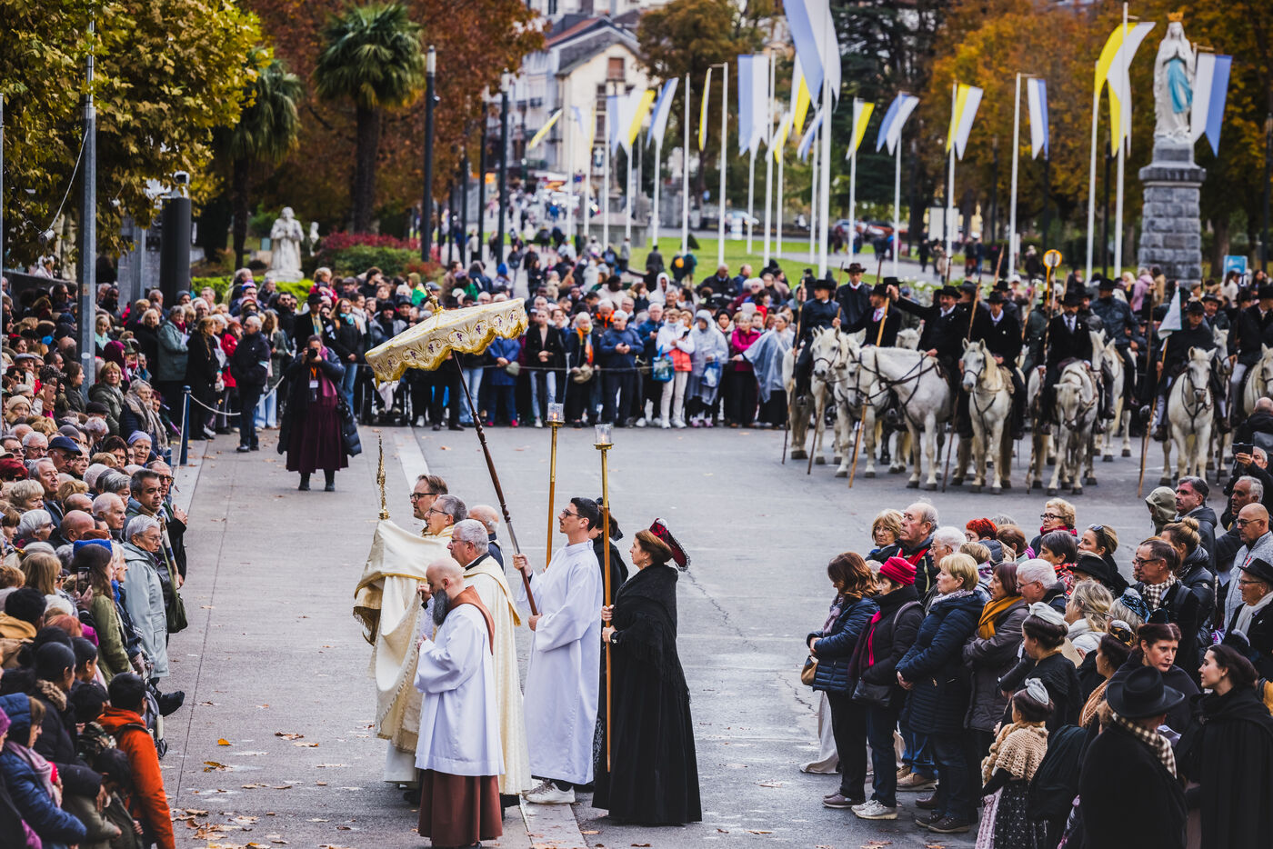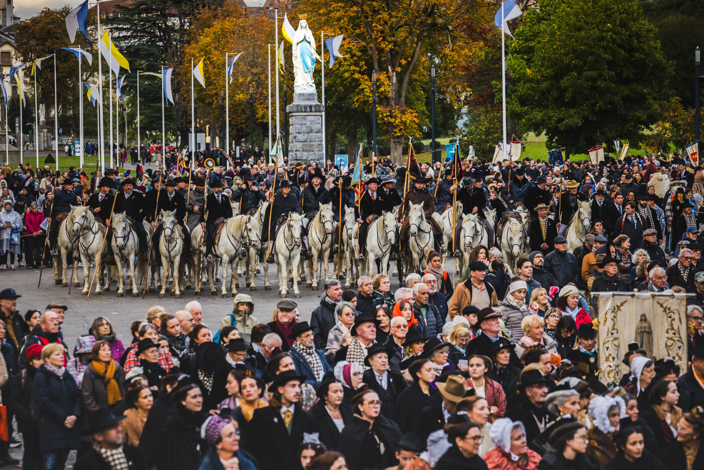 Organisé tous les deux ans, le pèlerinage des Gardians à Lourdes réunit chaque automne plusieurs milliers de participants, dont soixante cavaliers et de nombreuses Arlésiennes en costumes traditionnels. Venus de Camargue et des régions d’oc, ils portent l’héritage d’une tradition vieille de cinq siècles. Fondée en 1904 par le poète et félibre Folco de Baroncelli-Javon, la Nacioun Gardiano œuvre à la préservation de la langue d’oc, des coutumes taurines et du costume d’Arles. Ce rassemblement vise à célébrer l’union entre spiritualité et culture camarguaise. Lourdes étant reconnue comme lieu de pèlerinage inclusif, privilégiant l’accueil des malades et des personnes en situation de fragilité, de nombreuses personnes en fauteuil roulant ont assisté à la procession souvent aidées par les Gardians eux-mêmes.