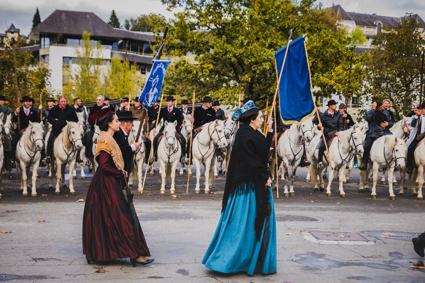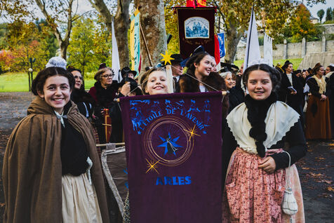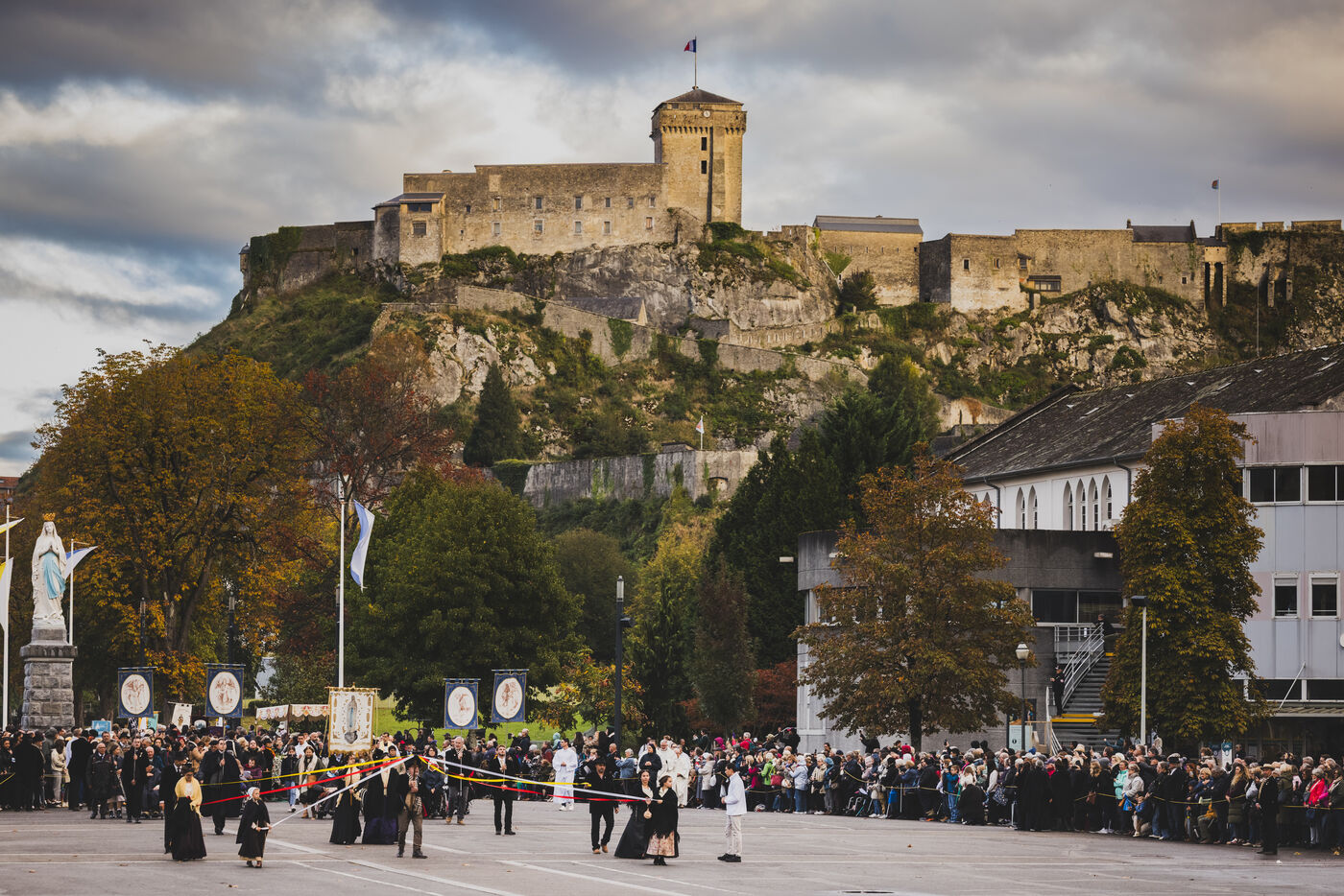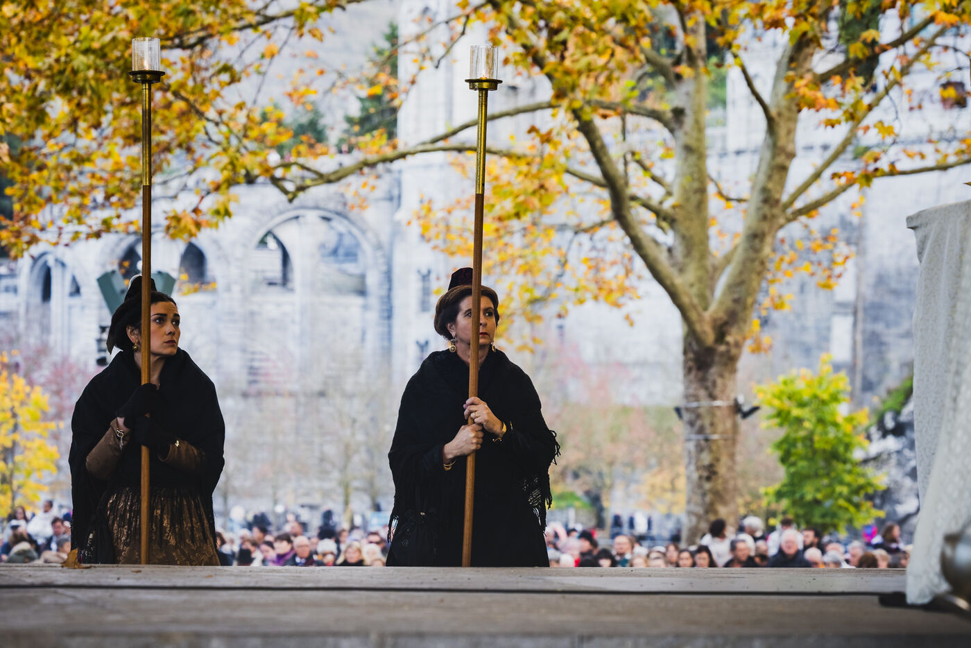 Organized every two years, the pilgrimage of the Gardians to Lourdes gathers every autumn several thousand participants, including sixty horsemen and many Arlésiennes in traditional costumes. Coming from Camargue and the régions d’oc , they carry the heritage of a tradition that is five centuries old. Founded in 1904 by the poet and félibre Folco de Baroncelli-Javon, the Nacioun Gardiano works to preserve the Occitan language, bullfighting customs, and the Arles costume. This gathering aims to celebrate the union between spirituality and Camargue culture. Lourdes, recognized as an inclusive pilgrimage site where welcoming the sick and vulnerable is a priority, saw many wheelchair users attend the procession—often assisted by the Guardians themselves.