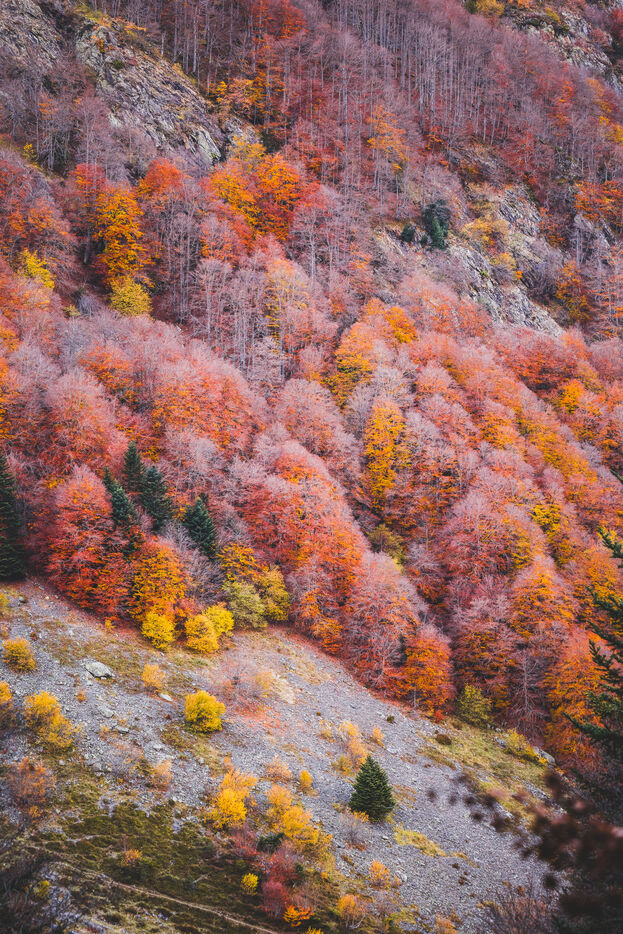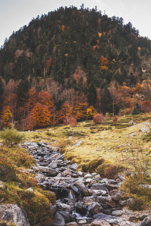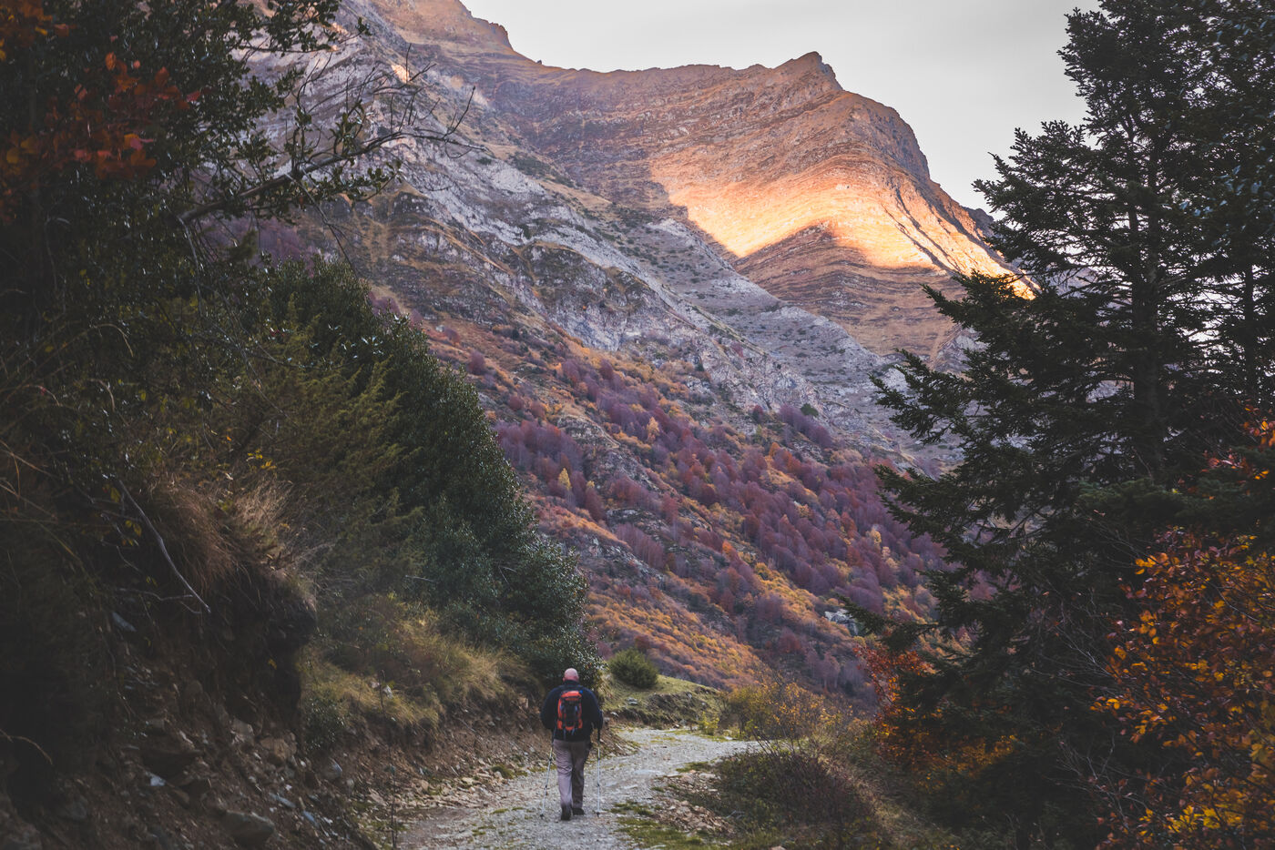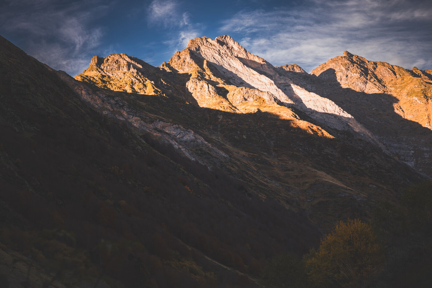Created in 1967, the Parc National des Pyrénées is a protected natural area renowned for the exceptional richness of its landscapes and the diversity of its biodiversity. It is a place where nature conservation, economic activities, tourism, and pastoral traditions come together to form a unique setting. It offers a wonderful opportunity for a few hikers, above the lac d'Estaing in the Hautes-Pyrénées , to escape and enjoy the autumnal light while searching for ibex.