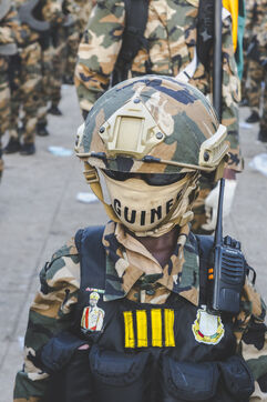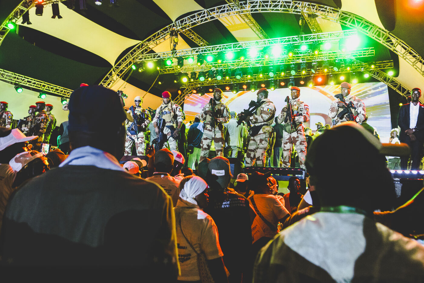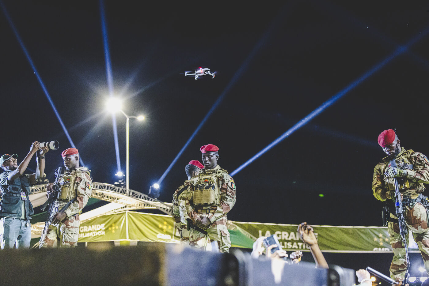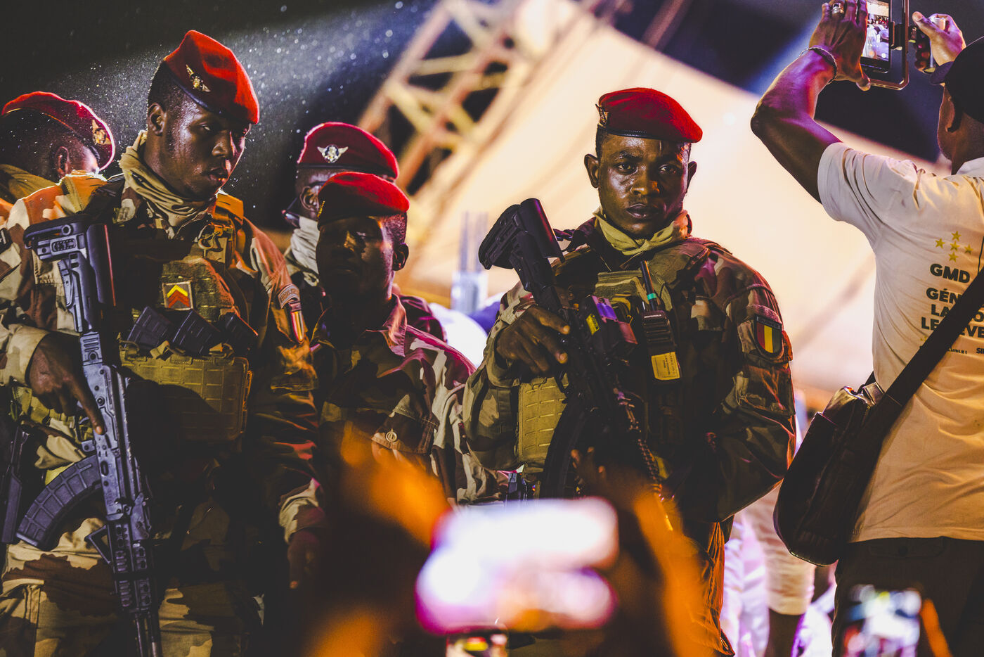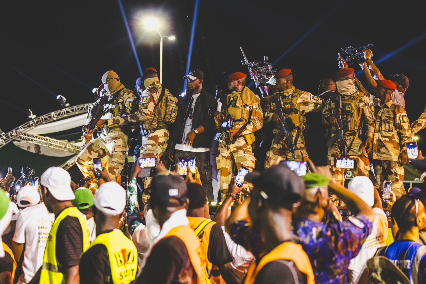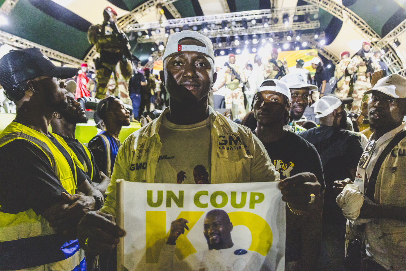 À la veille du scrutin présidentiel guinéen du 28 décembre 2025, avec neuf candidats en lice, la figure du général Mamadi Doumbouya (GMD, pour Génération Pour La Modernité et le Développement) est omniprésente à Conakry : affiches, bâtiments peints et sigles sur toutes les artères principales. Sa présence silencieuse au meeting de la Grande Mobilisation sur l'esplanade du Palais du Peuple, sous la protection d'un cordon de forces spéciales l'abritant du regard direct du public, a visiblement contenté les milliers de sympathisants venus le soutenir, chauffés par une succession d'artistes et les membres du gouvernement sur scène. Quatre ans après son coup d'État du 5 septembre 2021 qui renversa Alpha Condé, son accession au pouvoir fut perçue d'abord comme un espoir après les dérives du président déchu. Beaucoup lui reconnaissent des avancées spectaculaires dans la construction de routes et d'ouvrages, décongestionnant Conakry, le BTP ou la création d'emploi à travers le chantier Simandou d'exploitation et de transport par rail du fer. D'autres ont progressivement déchanté, à l'instar de l'opposant Dr Ousmane Kaba, président du PADES, fondateur de l'université privée Kofi Annan, évincé pour un motif administratif qu'il conteste. Les opposants historiques ont aussi été évincés de la course. Tous tentent de contenir leurs frustrations, en prônant la poursuite de leur combat par des voies démocratiques et non violentes et attendent déjà les élections législatives. Une cérémonie interreligieuse pour la paix, en présence d'anciens Premiers ministres et du père et de la sœur du président, rappelait aux Guinéens la nécessité de faire front collectivement pour un scrutin appaisé.